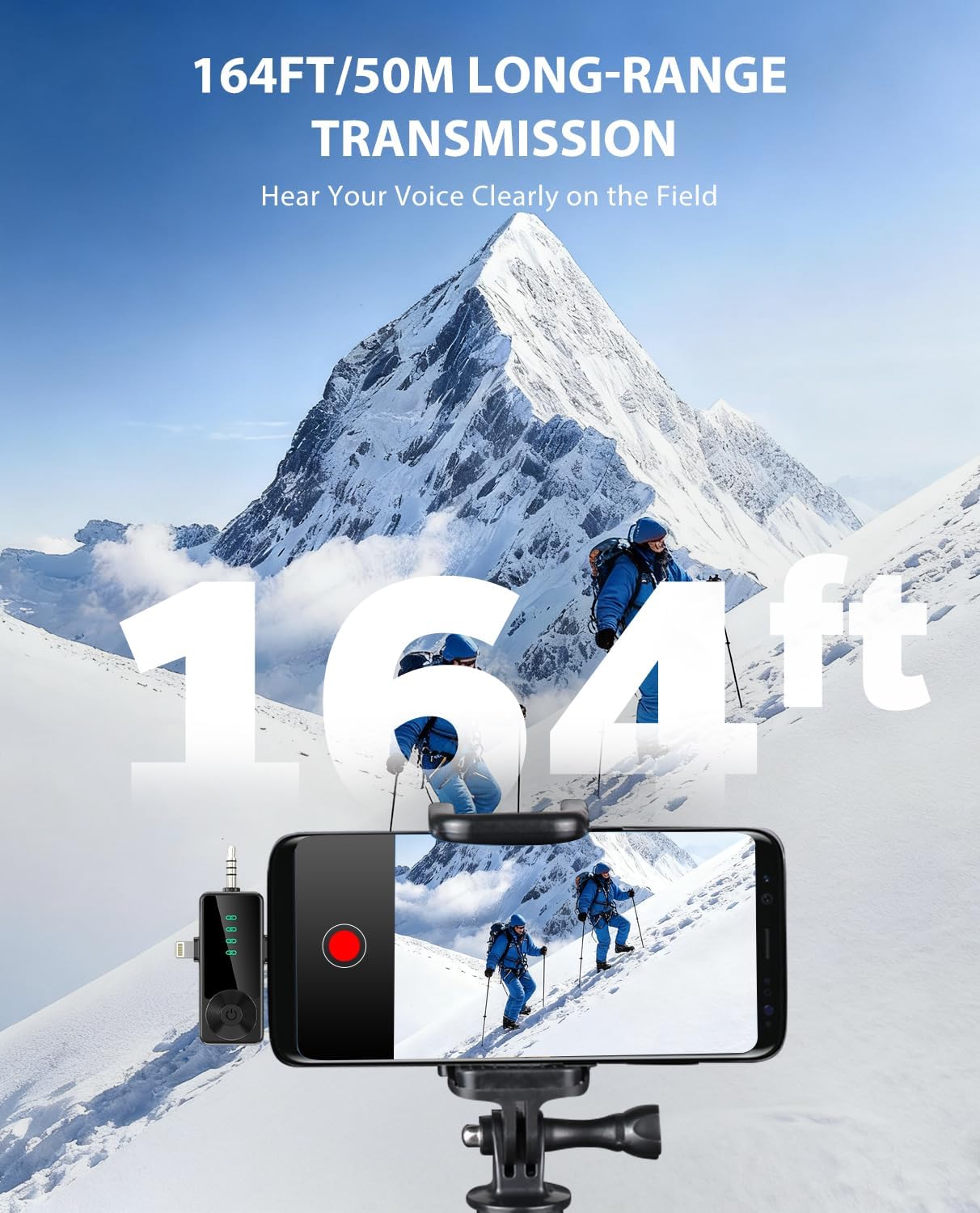 🏅【𝐖𝐢𝐝𝐞 𝐂𝐨𝐦𝐩𝐚𝐭𝐢𝐛𝐢𝐥𝐢𝐭𝐲】The wireless lavalier microphone is fully compatible with both iOS and Android systems via a 3.5mm jack or USB-C adapter. It supports iPhone 14 and earlier models, as well as the new iPhone 15/16/17 (Type-C interface), along with the vast majority of Android phones, including brands like Samsung and Motorola, as well as computers and tablets.