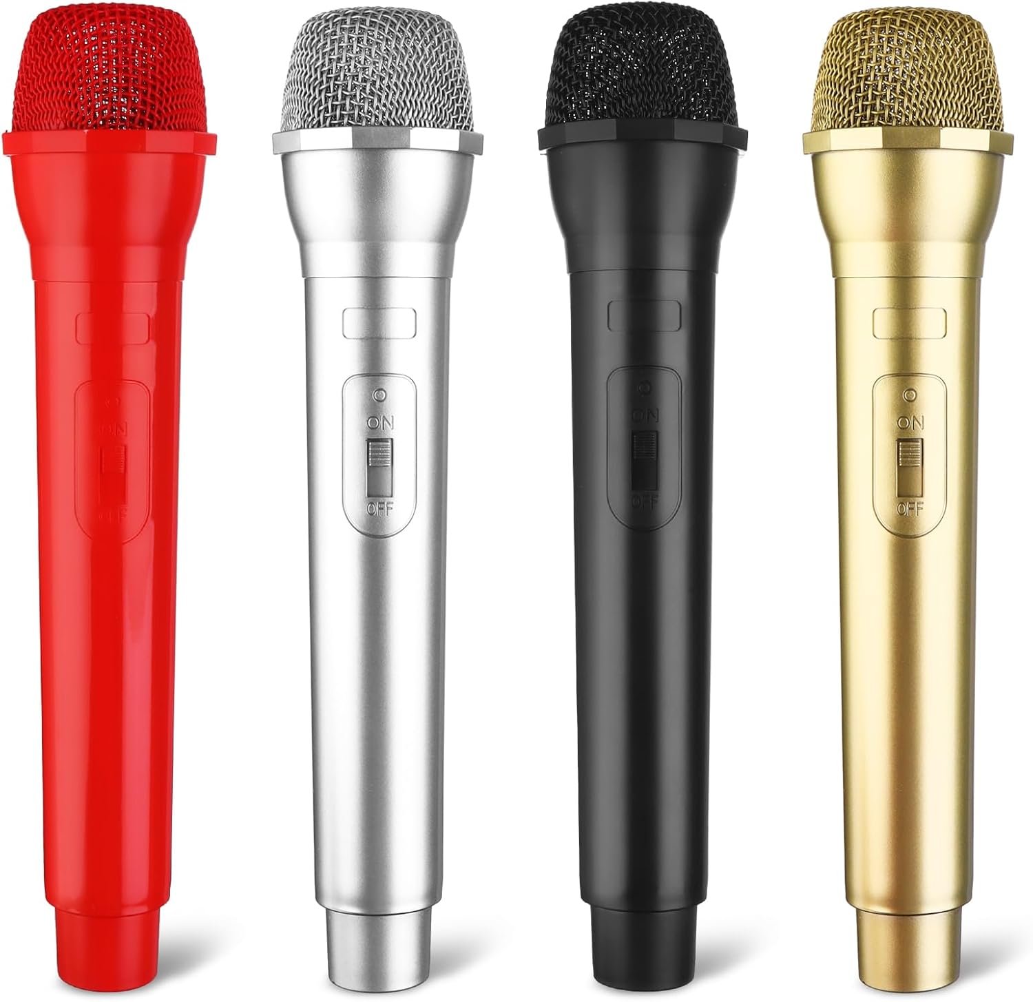 【What You Get】- You will receive 4 pieces of fake microphone prop in different colors-red,silver,black,gold. Adequate quantity to meet your festival uses and replacements.