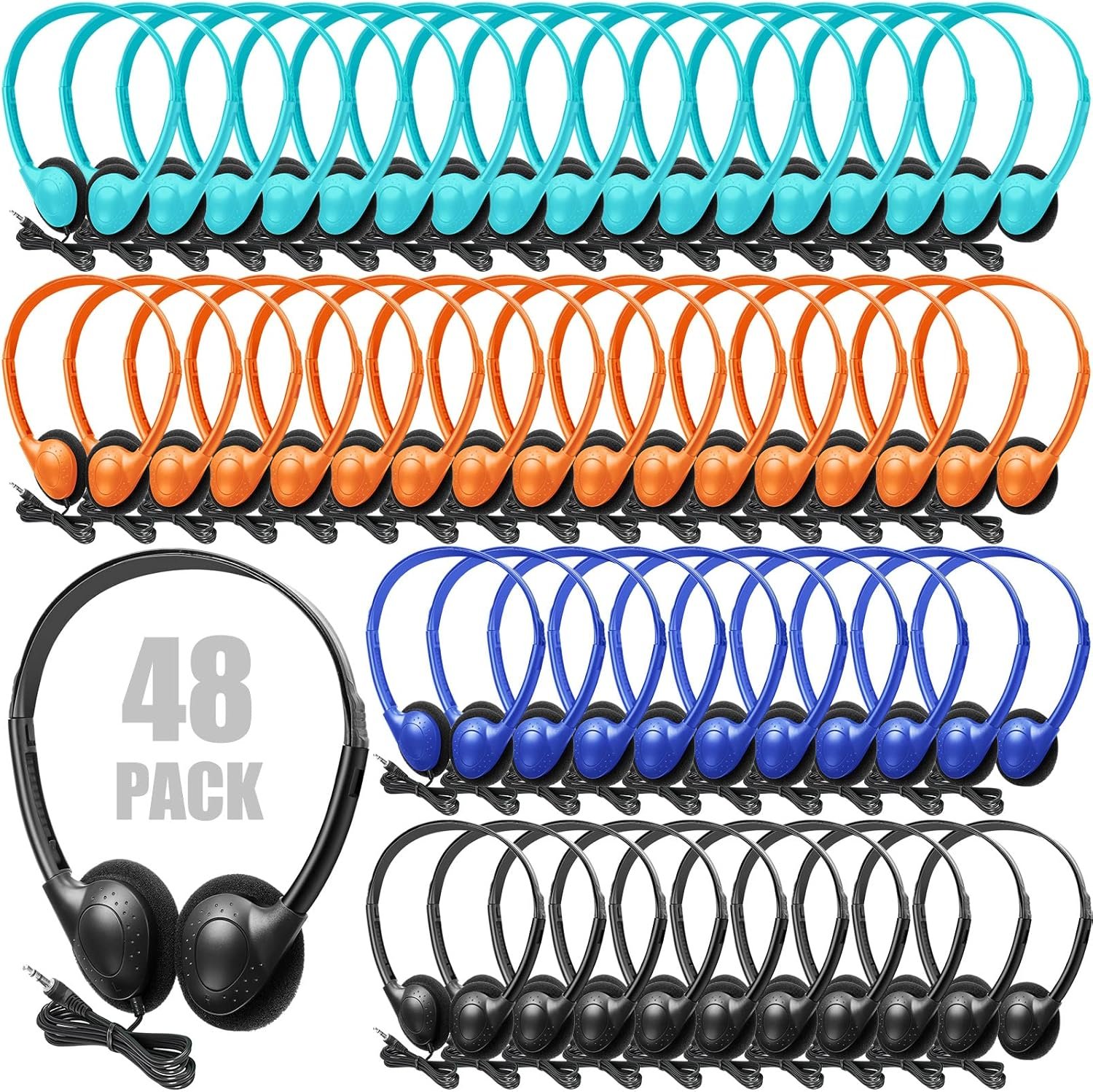 48 Pack Classroom Headphones on Ear Wired Stereo Headset with 3.5mm Jack, Over The Head Student…