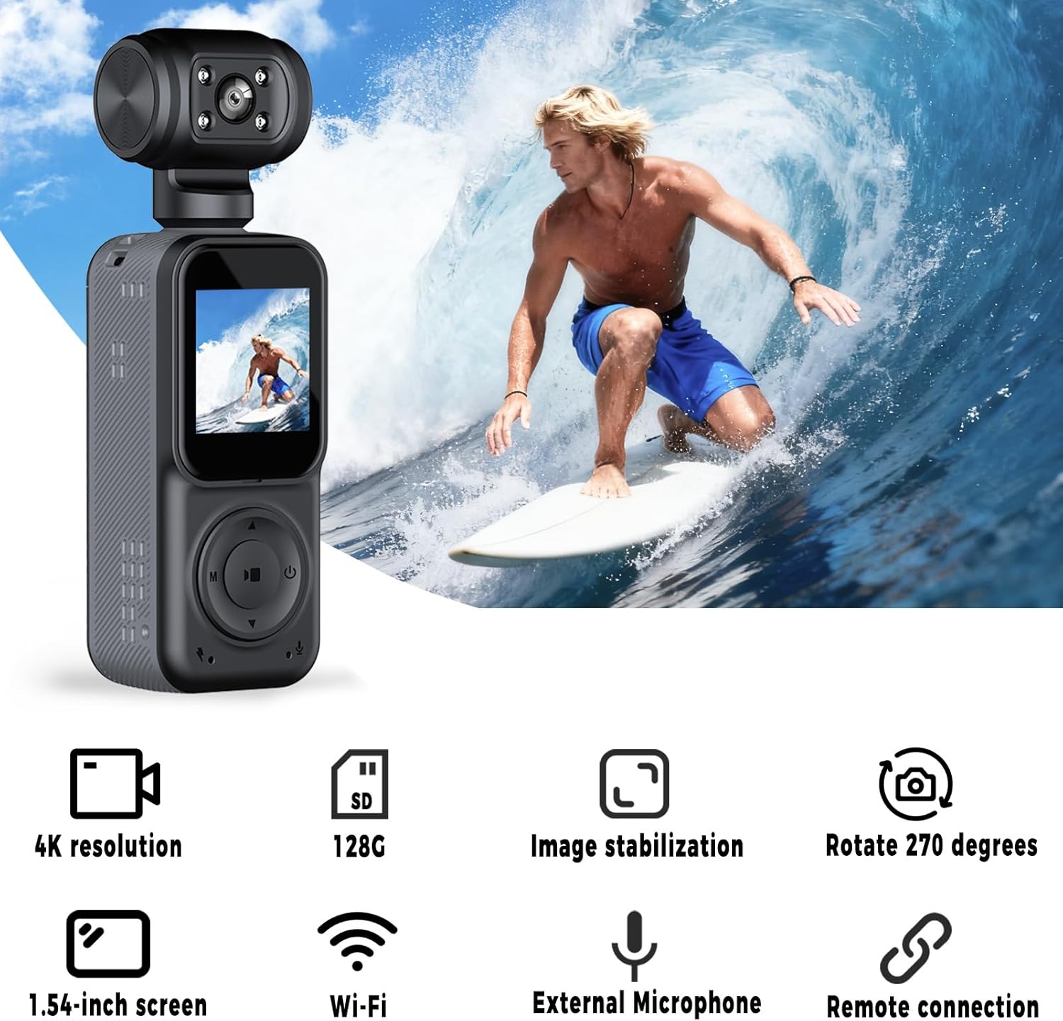 【4K Pocket Vlog Camera】Pov Camera Features a 1.54-inch HD display with a compact, ergonomic design for comfortable handling. Content creator camera Powered by an advanced chipset lens, this pocket pov camcorder supports true 4K/30fps video resolutions for effortless ultra-high-definition recording.