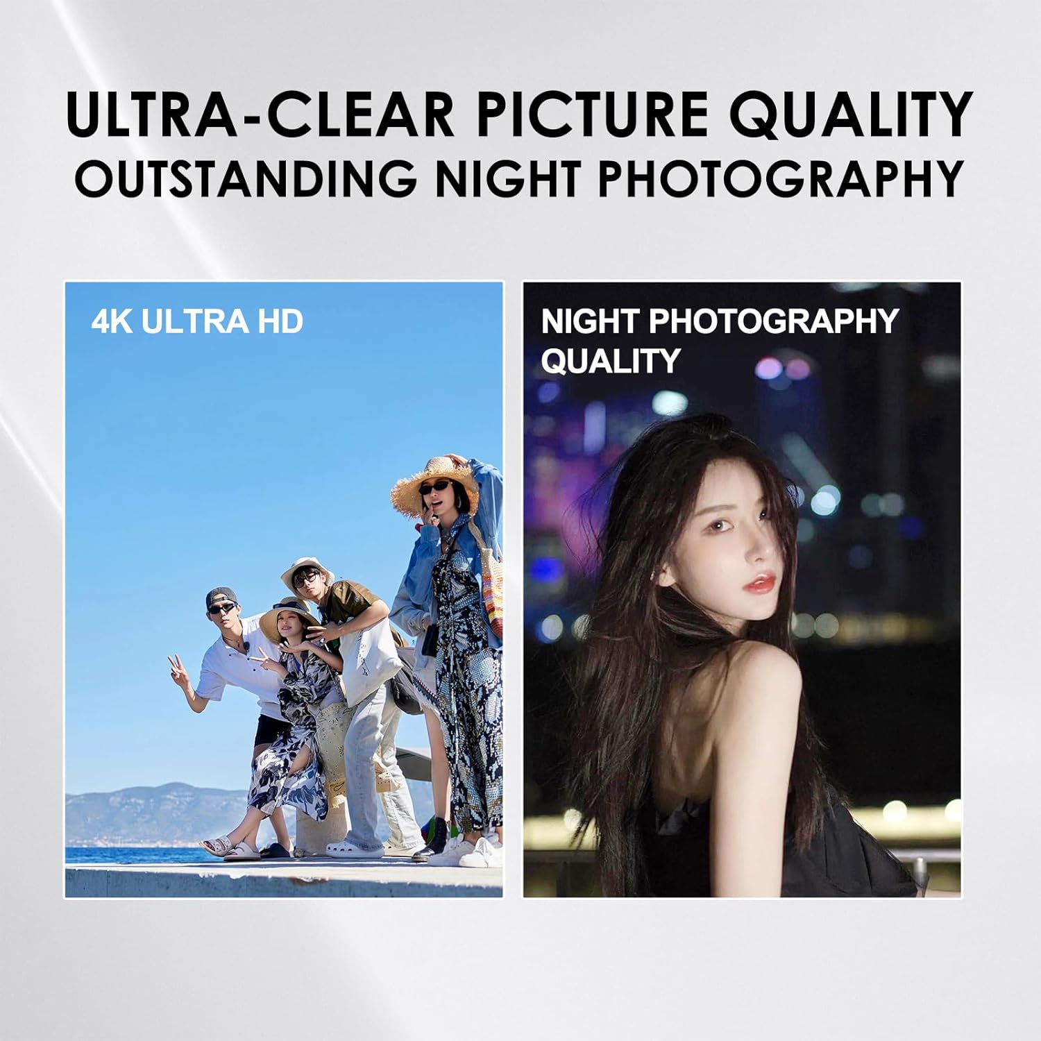 🌙 Night Vision + Anti-Shock for Action: Dual fill lights transform it into a night vision camera; Built-in stabilization makes it an action camera for skiing/cycling without blur.