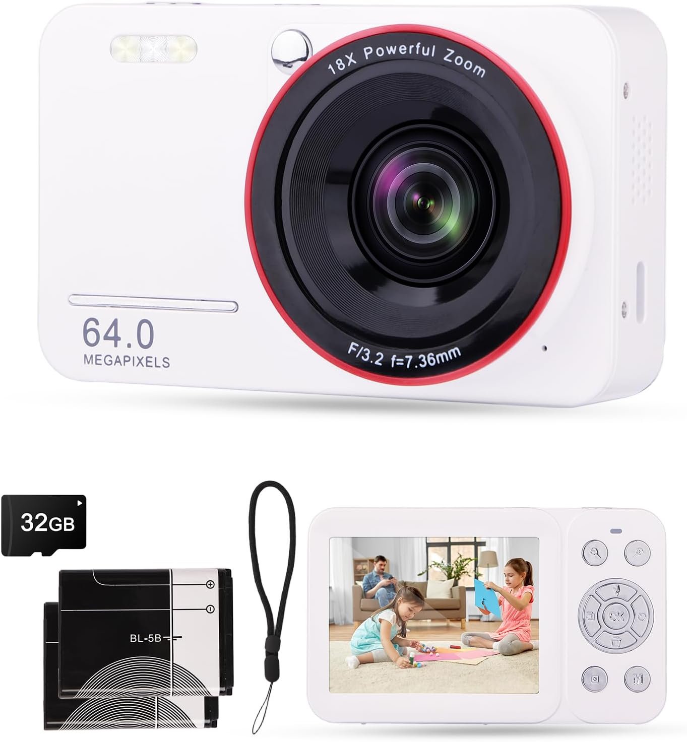 Perfect Gift with Complete Accessories: The perfect gift, ready to unbox and enjoy! Includes: camera, two batteries, Type-C charging cable, camera pouch, and 32GB SD Card. This point and shoot digital camera is the best gift for surprising boys, girls, kids, teens, adults, or photography lovers on birthdays, Thanksgiving, Christmas, Valentine’s Day or any special occasion. Accompanying and recording every passion of life.