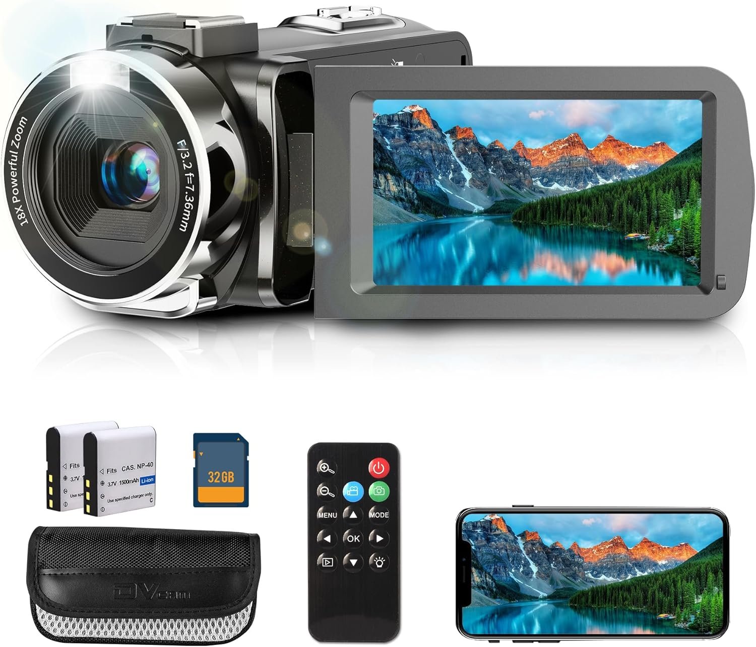 4K Video Camera, Camcorder with IR Night Vision, Digital Camera, 18X Digital Zoom, APP Connection, Vlogging Camera for YouTube, Video Camera, Built in Microphone, Remote, 3″ Touch Screen