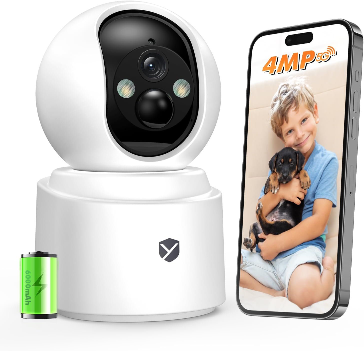 4MP 2.5K Indoor Camera Wireless, 6000mAh Battery Powered, 360° View, 5G&2.4G WiFi, Color Night Vision, 2-Way Audio, Home Security/Dog/Pet Camera with Phone App, AI Motion Detection, Cloud/TF Storage