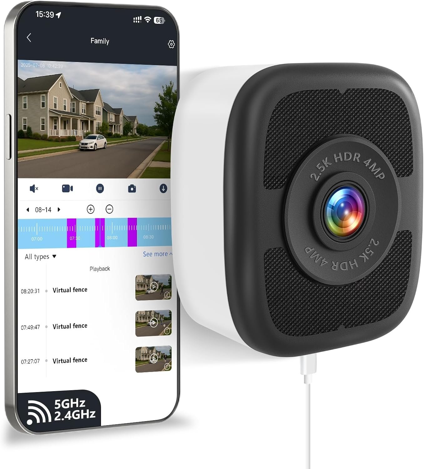 2.5K Ultra HD Picture Quality & Color Night Vision:Equipped with a 4-megapixel lens and 2.5K (2560×1440) ultra-high-definition resolution,it delivers stunning video performance;Even in low-light environments,it can excellently display full-color images,ensuring no critical details are missed and safeguarding nighttime security