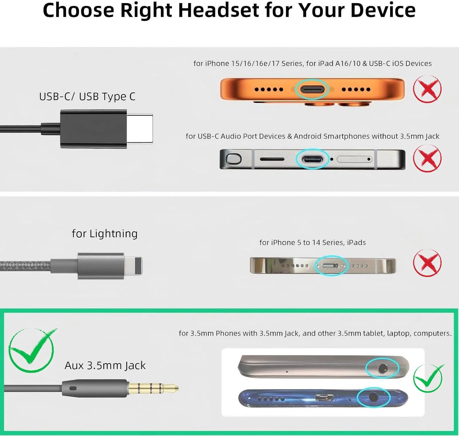 5.9FT Long Cord Wired Earbuds for Chromebook Laptop, 3.5mm Jack Plug Over Ear Hook Headphones f…