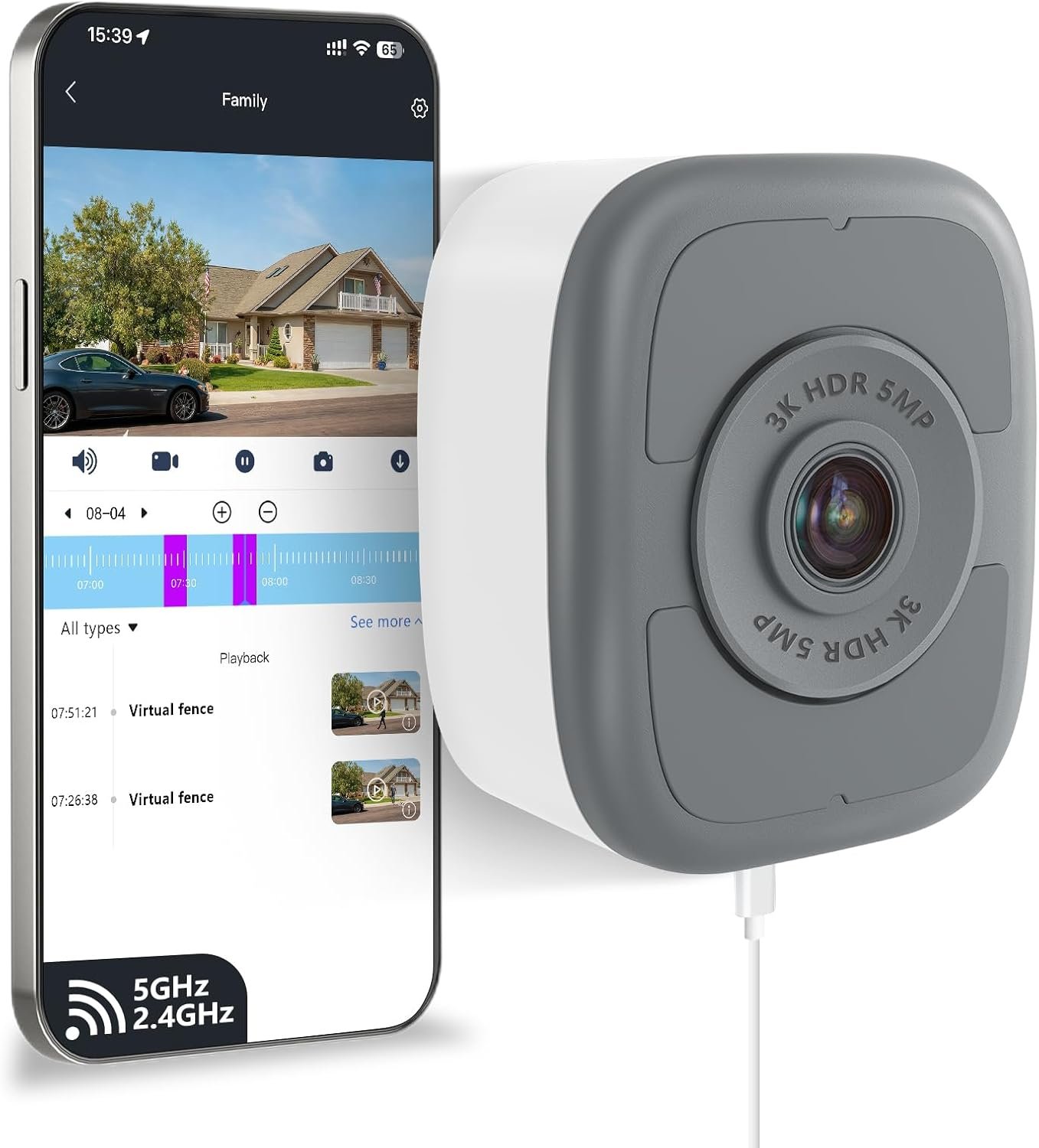 5MP HDR & Full-Color Night Vision for Crystal-Clear Detail Enjoy clear HD footage day and night, HDR reveals details in shadows, while full-color night vision lets you distinctly see clothing hues and vehicle models after dark