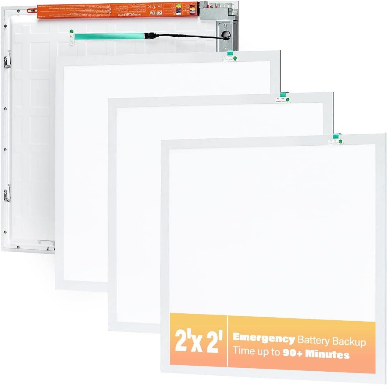 UL Listed Emergency Driver – The 2×2 led emergency light has over voltage protection, over current protection, over temperature protection, over charge protection, over discharge protection, and short circuit protection
