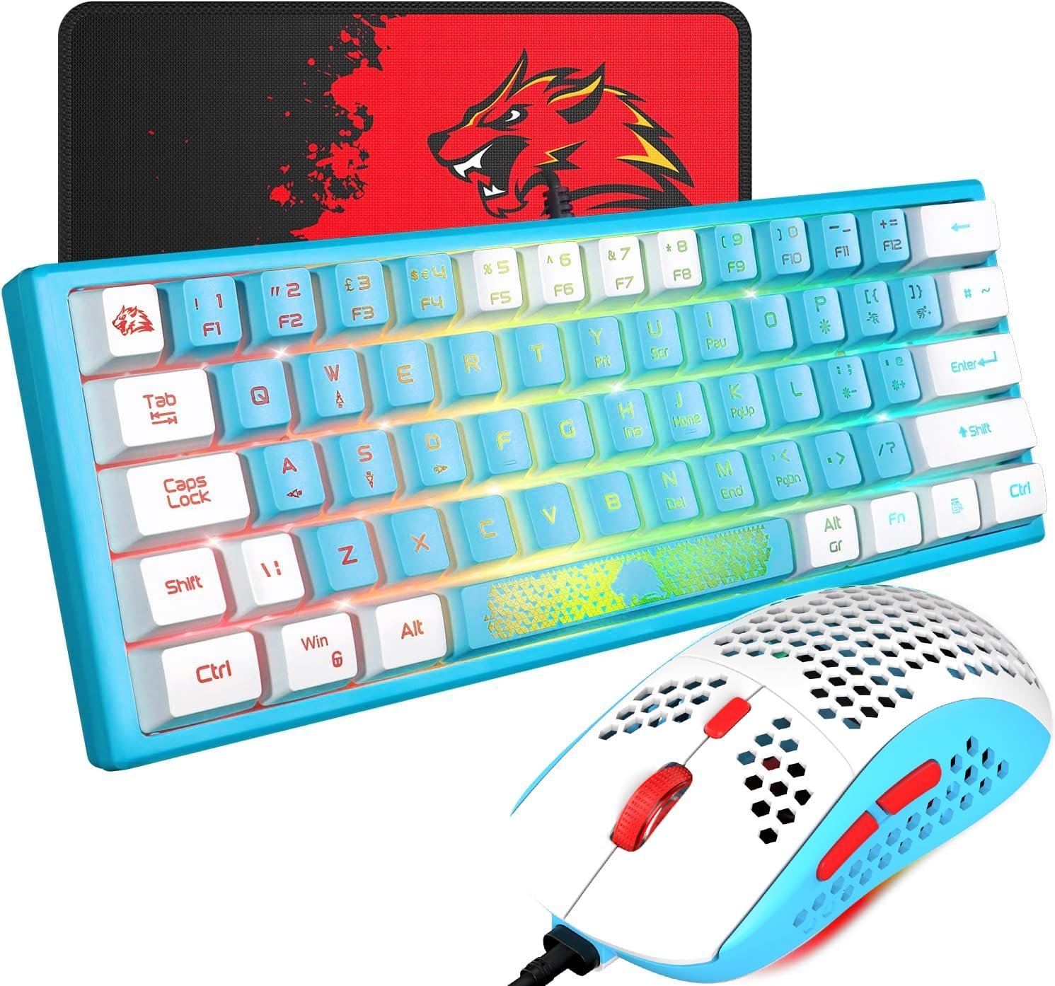 60% Gaming Keyboard and Mouse Combo Duble Color Keycaps Samll RGB Backlight Mechanical Feeling