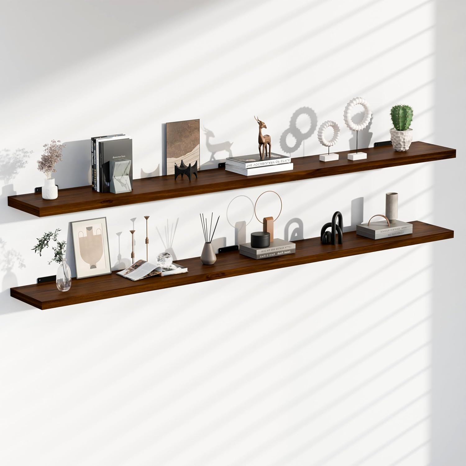 60 Inch Rustic Walnut Wood Floating Shelves 2-Pack – Farmhouse Wall Shelves with 150 lbs Capacity, Easy Installation for Living Room, Kitchen, Bedroom