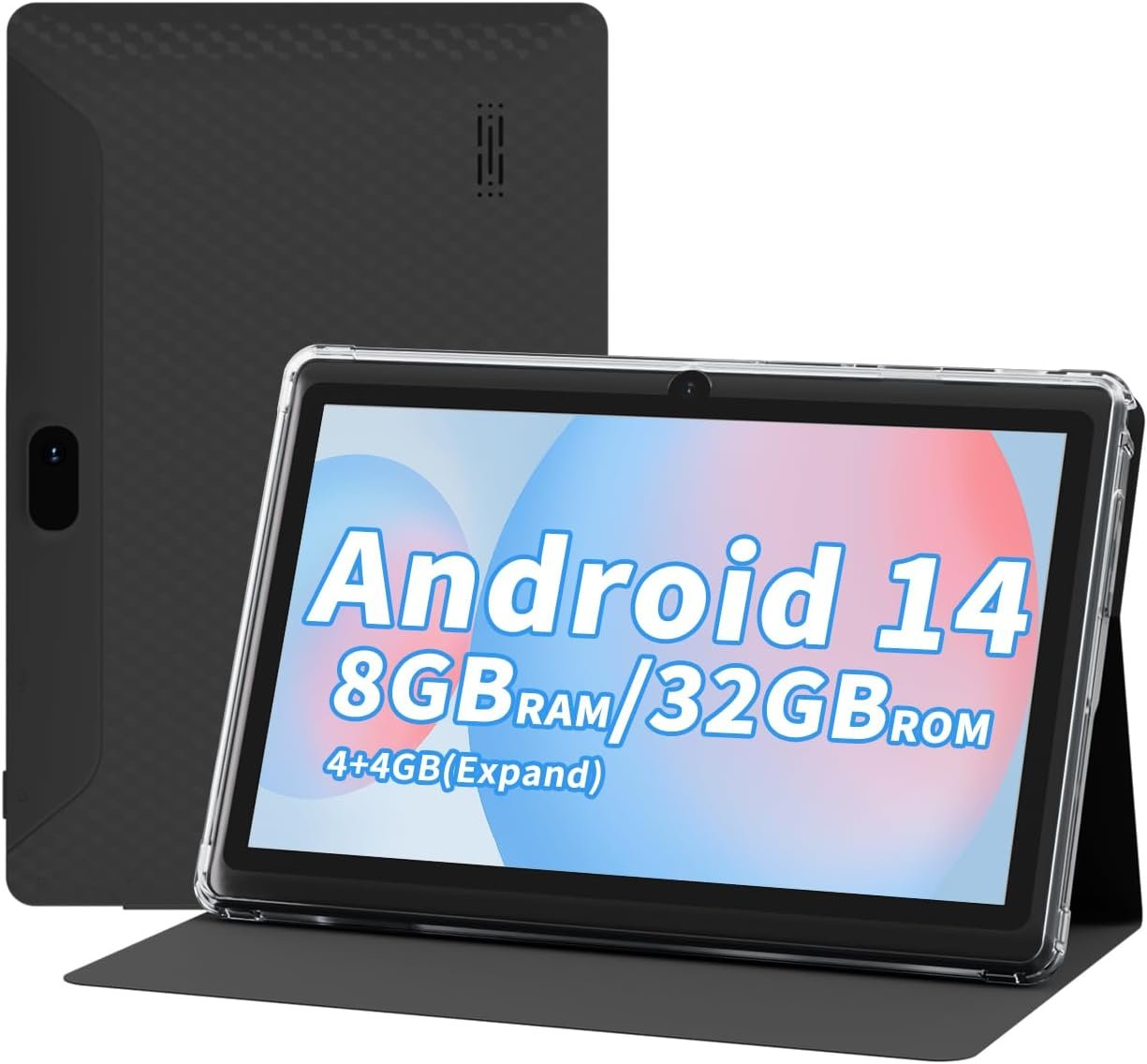 7 inch Andaroid 14 Tablet, 8GB RAM 32GB ROM 1TB Expand, Quad Core Processor, Dual Camera, Bluetooth, WiFi 6, 3000mAh Battery, IPS High Definition Screen, Powerful Tablet.