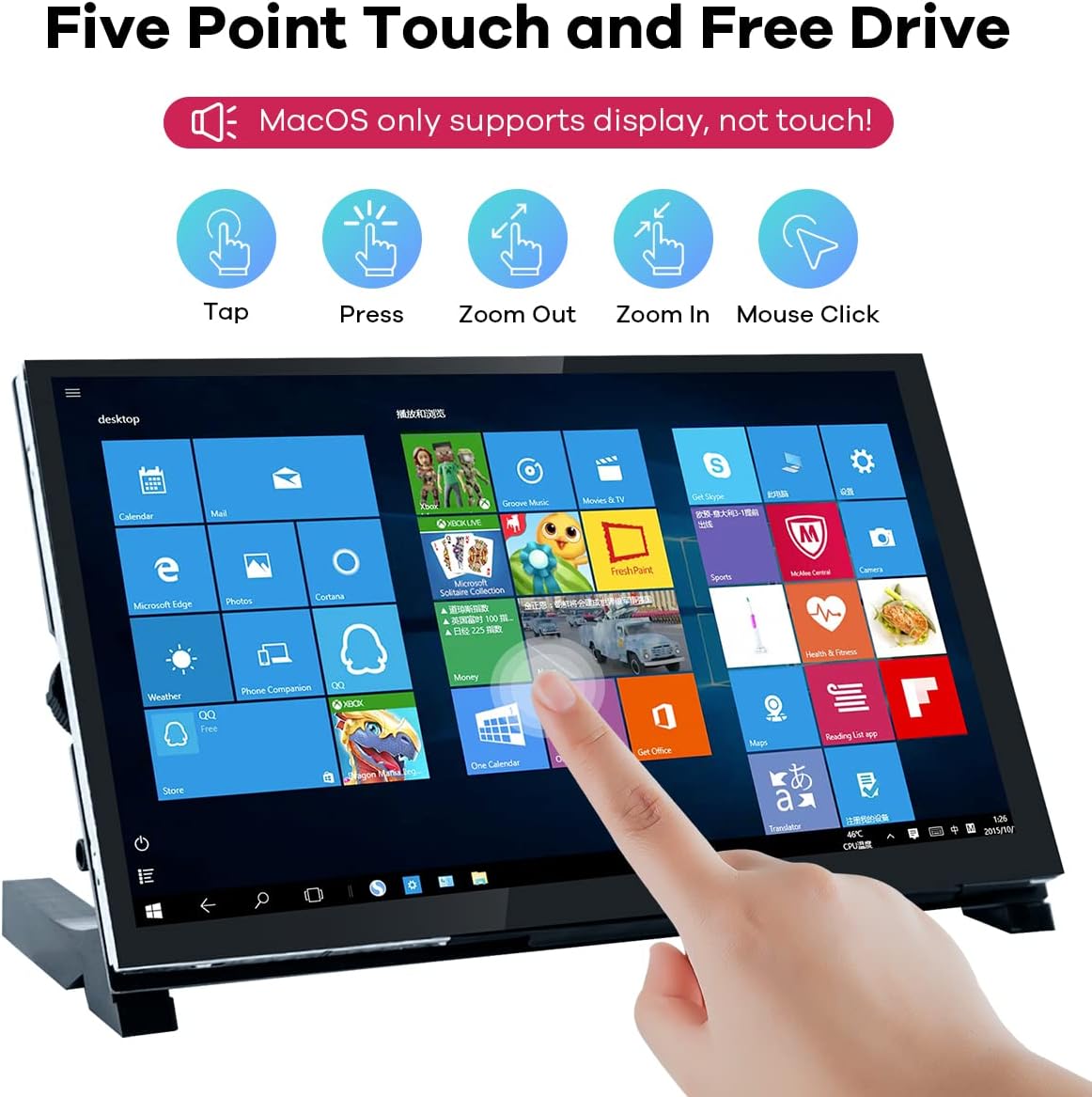 Support win10/win8/win7 system, support five-point touch plug and play without driver(for MacOS only supports display, not touch).