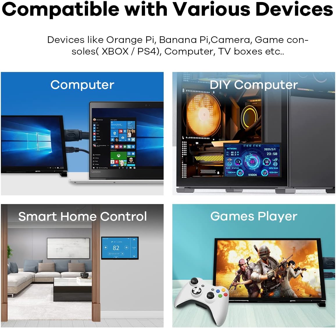 Perfectly adapt to the Raspberry Pi. The packaging comes with the Raspberry Pi 3B/4B adapters, making the screen and the motherboard connect more convenient. Also you can use it with other mainstream development boards such as Banana Pi, BB BLACK etc.