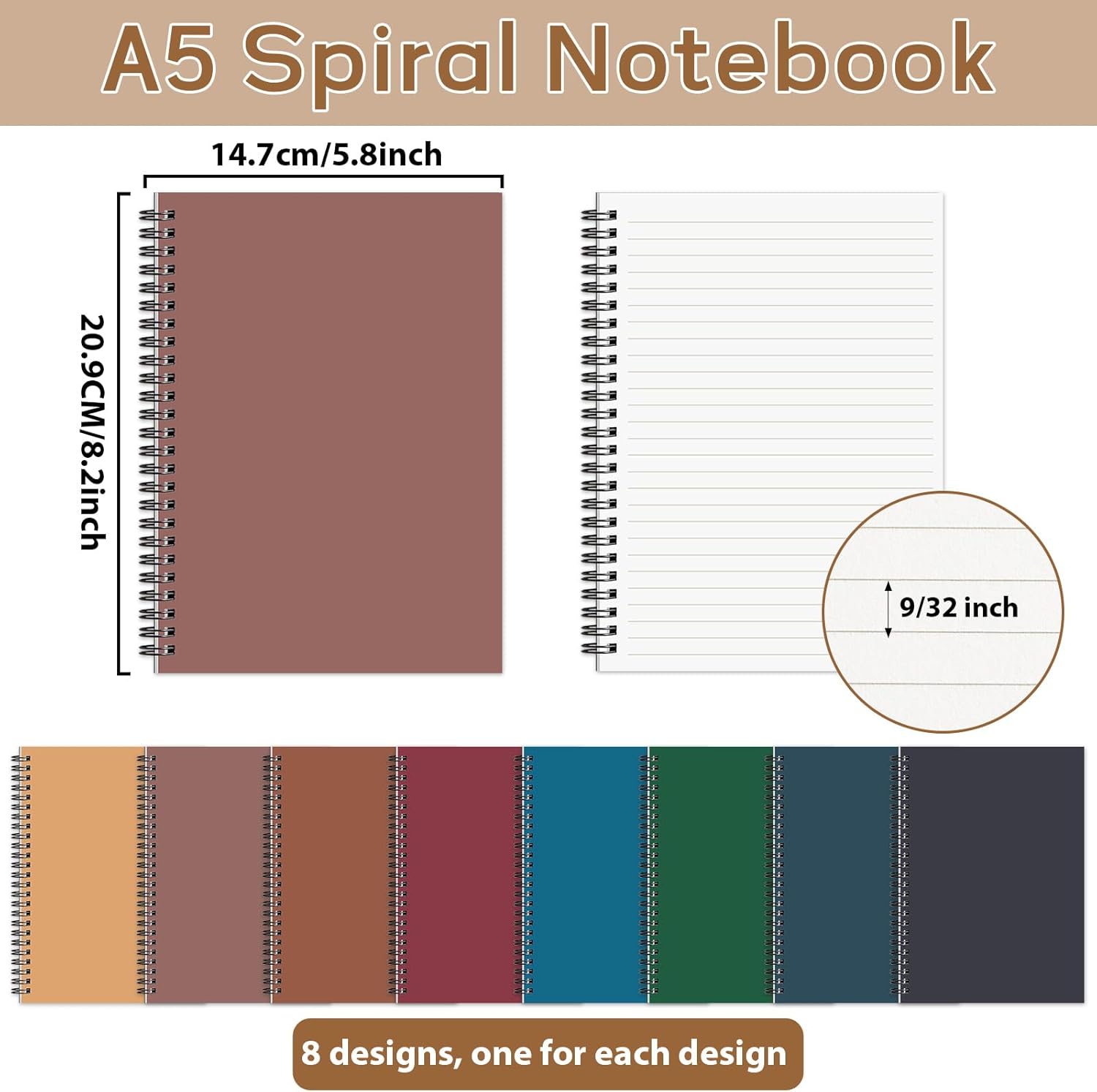8 Pack Spiral Notebook A5 8.3 x 5.7 Inch College Ruled Spiral Journal Notebook 100 Pages/50 She…