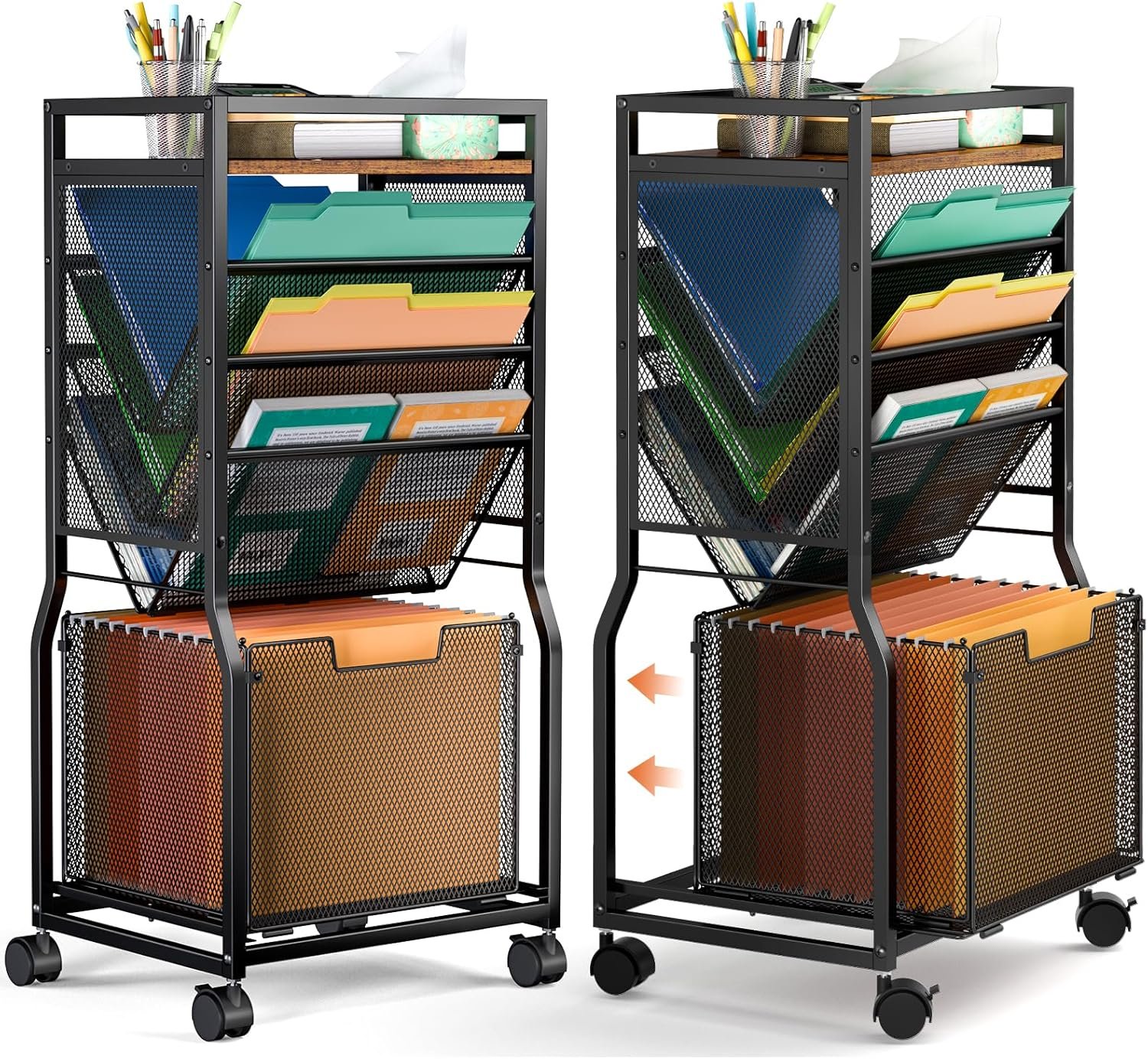 ✅【Dual-Sided Access Design】The mobile file cart with 6 tray layers, which designed for dual-sided access, allowing you and your colleagues to easily retrieve files from either side. Our file organizer cart also comes with a hanging file basket that can be pulled from both directions, making office organization more convenient and tidy.