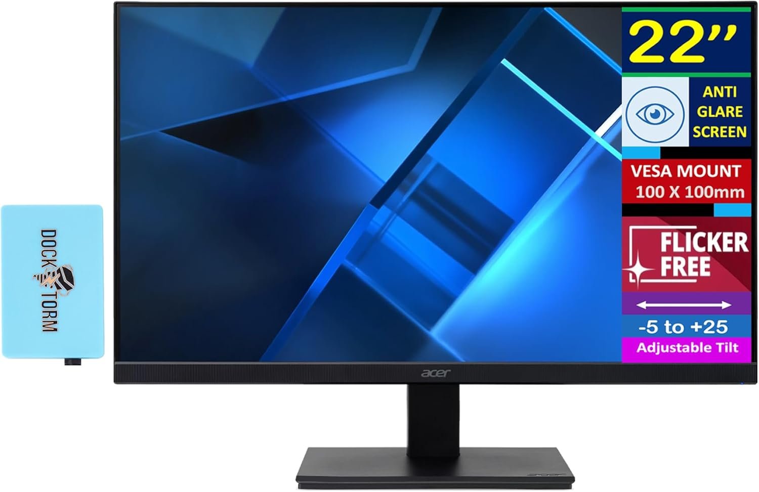 Acer Vero 22″ FHD Free Sync Monitor with 4ms Response Time, 100 Hz Refresh Rate, Flicker Free, Anti Glare, VESA Mount (100mm), HDMI & Dockztorm USB Port Expander, Black (2026 Latest Model)