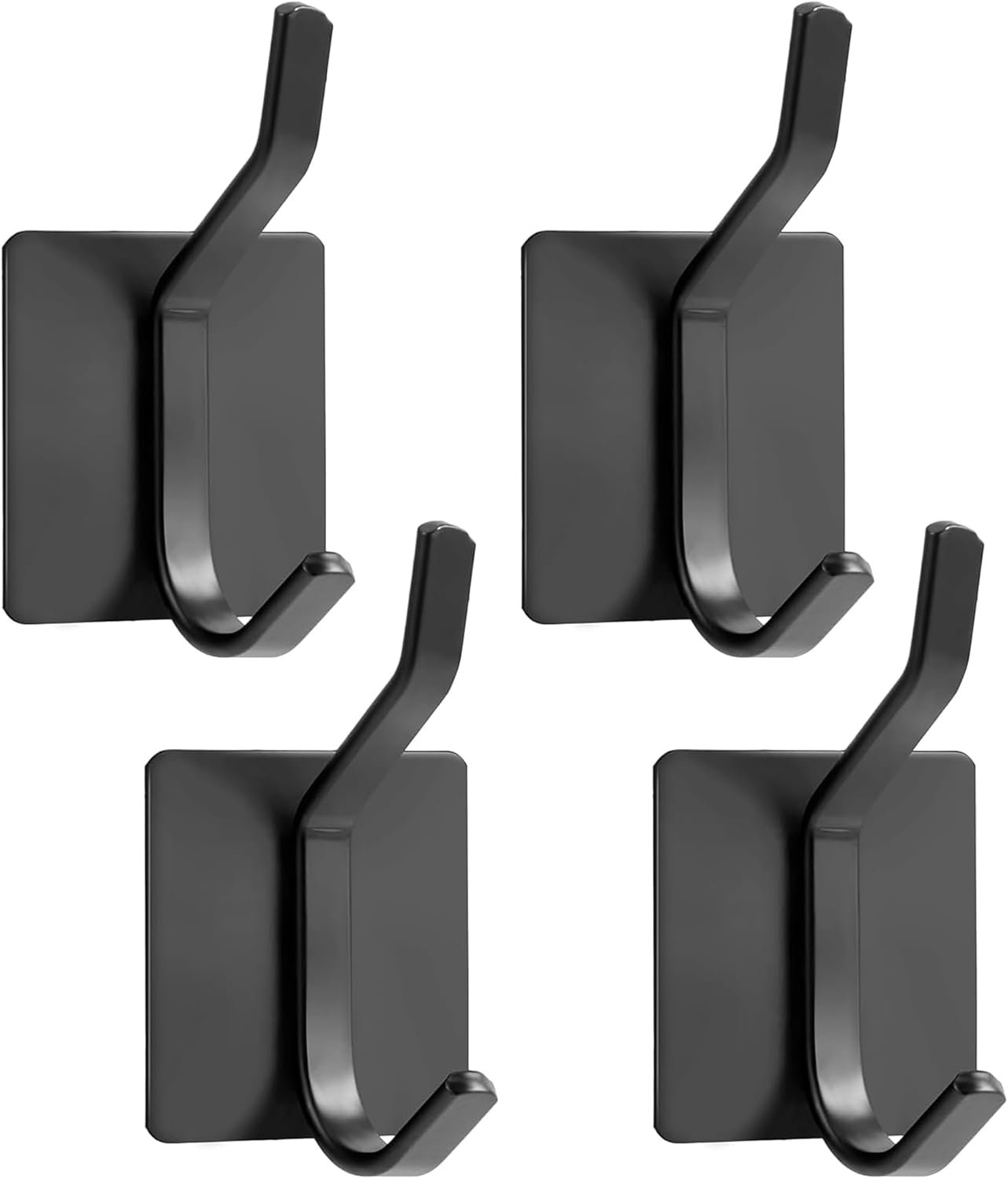 Adhesive Wall Hooks for Hanging Coat and Towel, SUS304 Stainless Steel Towel Hooks for Bathroom, Heavy Duty Coat Rack Door Holder Hanger Extra Sticky 13 LB (Max), Black 4 Pack, AYG-SQ-B-4P