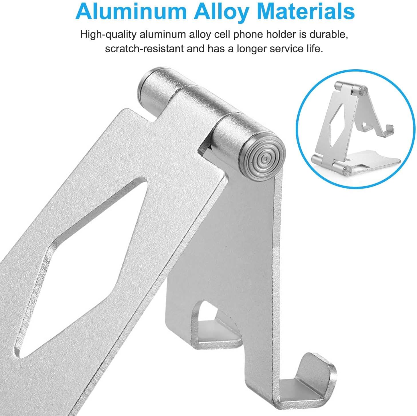 【Full Aluminum Material】Our cellphone stand was made of aluminum material which can provide incredible durability and better scratch resistance to ensure a longer lifespan. This is a best gift of mobile phone holder for desk, travel, home, kitchen and office.