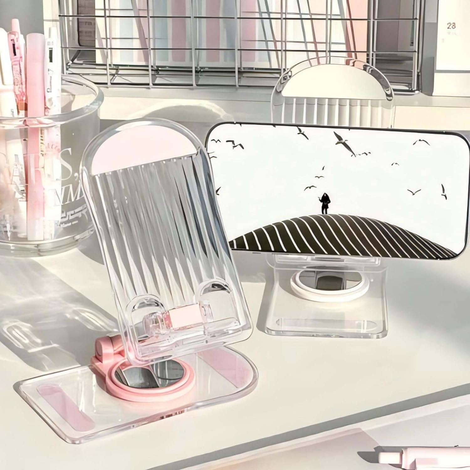 Adjustable Angle Clear Cell Phone Stand,Acrylic Cell Phone Stand for Desk,360 Degree Rotating Foldable Acrylic Phone Holder for iPhone Samsung Galaxy(Pink)