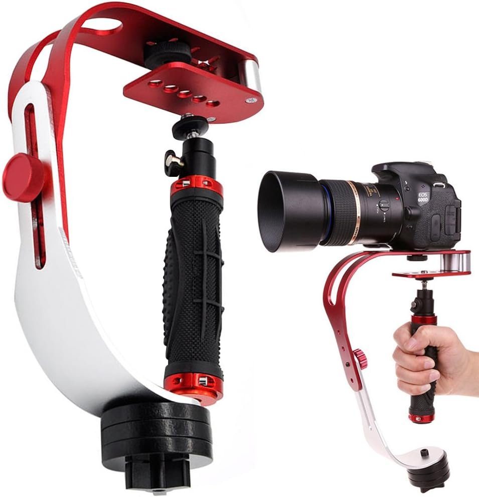 AFUNTA Pro Handheld Video DSLR Camera Stabilizer Steady Compatible GoPro Cannon Nikon Sony Camera Cam Camcorder DV Smartphone up to 2.1 lbs with Smooth Pro Steady Glide -Red/Silver/Black