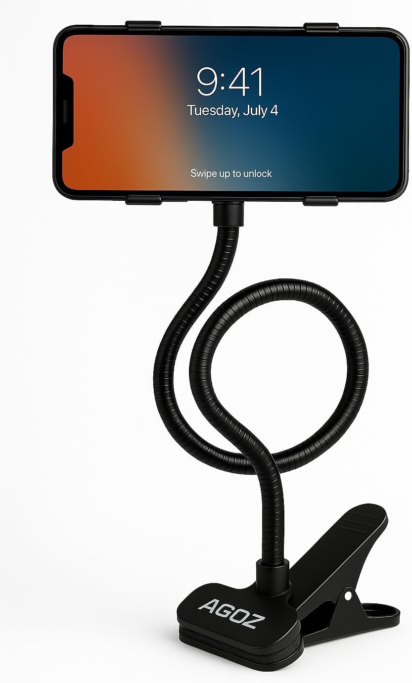 AGOZ Cell Phone Holder Gooseneck Mount, Lazy Clamp Clip Flexible Phone Stand for Office Desk Bed iPhone 17 Pro Max, iPhone 16 15 14 13 12 11, Samsung Galaxy S25, S25 Ultra,S24 S23 S22 A54 A14 A15 A16