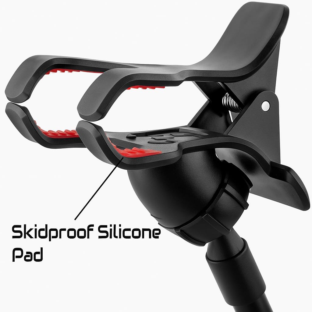 ✔SECURE AND ADJUSTABLE: The four claws with anti-slip and anti-sock rubber cushion keeps your cell phone sturdy and secure. Movable with long gooseneck and can be adjustable for perfect viewing. 360-degree swivel ball head provides a horizontal or vertical viewing angle.
