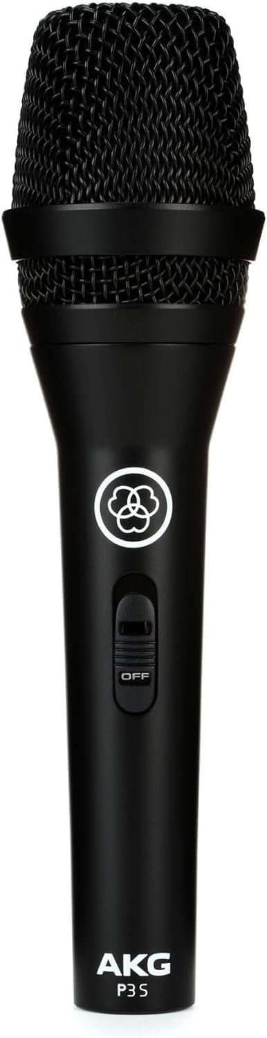AKG Pro Audio P3S High-Performance Cardioid Dynamic Vocal Microphone with On/Off Switch, XLR Connector, Professional Studio & Live Performance Cardioid Mic for Live Vocals, and Recording, Black