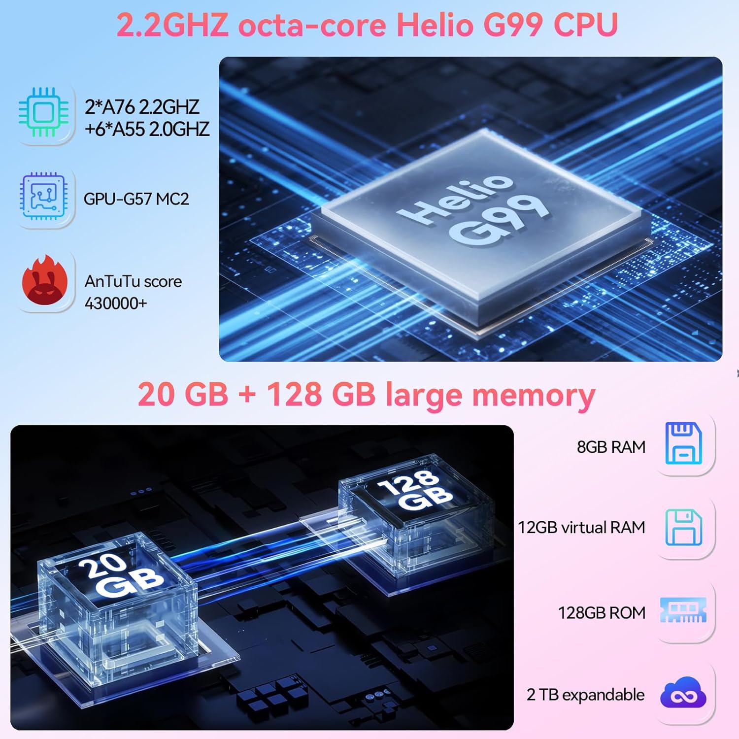 【Ample Storage Capacity】Featuring 20GB RAM (8GB + 12GB expandable) and 128GB ROM.UFS 2.1, you can easily store all your documents, photos, videos and apps while keeping your system running smoothly. It also supports expandable to 2TB, allowing you customise your storage needs to suit your studies, work or preferences, no limits. Plus, our tablet boasts GMS certification, meaning you can easily download any Google software seamlessly, such as Netflix, Facebook, and more