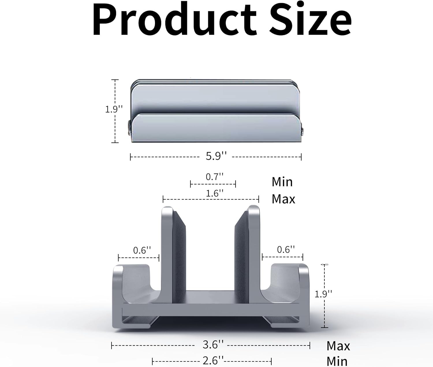 【Adjustable Width for Perfect Fit】 Enjoy broad compatibility with all your devices. This stand features an adjustable width (total adjustable range from 2.6in to 3.6in), allowing you to easily customize the slot thickness. This ensures a snug fit for everything from ultra-thin notebooks to thicker laptops, holding them securely in place.
