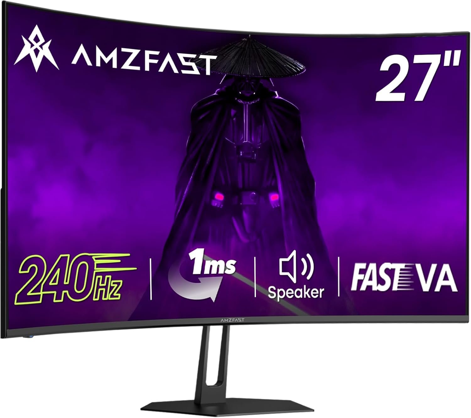 Amzfast 27 inch 240Hz Curved Gaming Monitor, FHD 1080P Monitor Gaming with Upgraded Built-in Speakers, MPRT 1ms with Fast VA Panel | 130% sRGB, 4000:1,1500R | 12 Months Warranty Exchange
