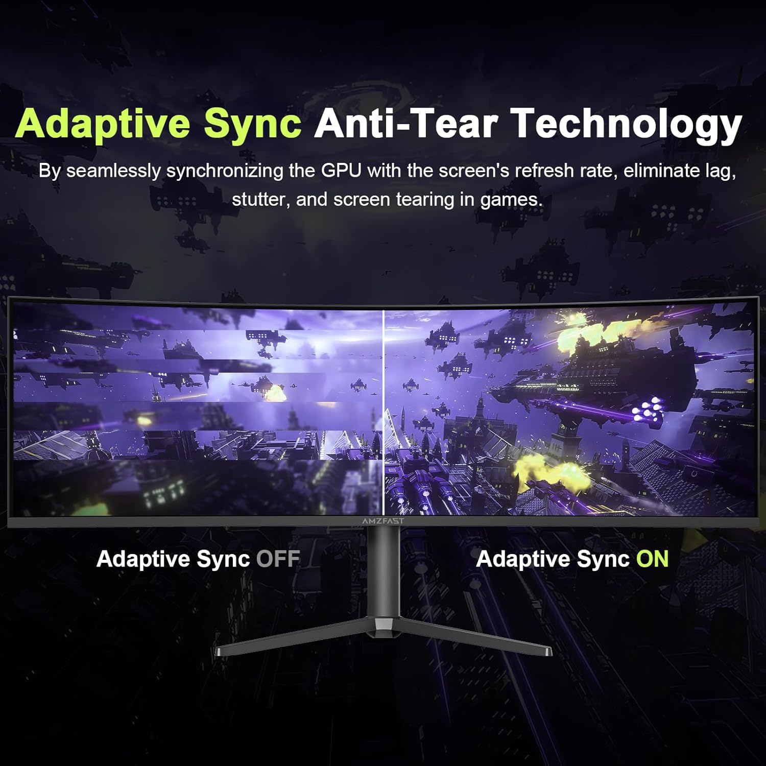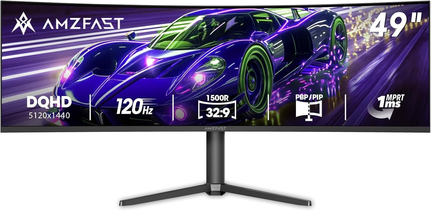 Amzfast 49 Inch Curved Monitor 120Hz DQHD 5120x1440p Ultrawide Gaming Monitor, 120% sRGB, 1500R, 1ms MPRT, HDR, Adaptive Sync, PIP/PBP, Height Adjustable, HDMI 2.0/DP 1.4, VESA 75×75, AMZG49C7U