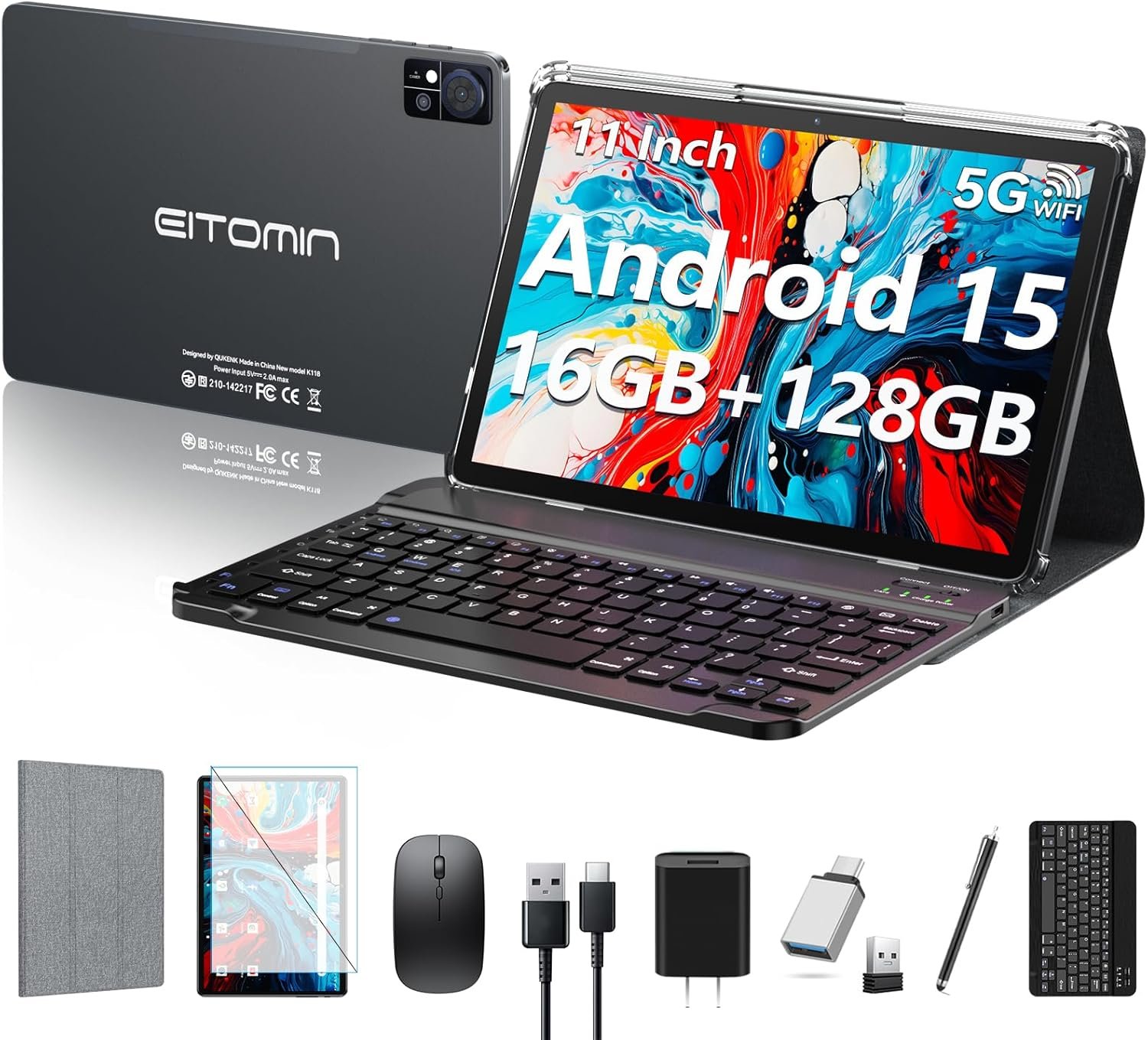 💡【After-sales Service + Packing List】 It handles work, study, and entertainment with ease, making it ideal for business people, students, and creative workers.Package includes: 1 x USB Charger, 1 x Type-C USB Data Cable, 1 x Instruction Manual, 1 x Touch Pen, 1 x Protective Case, 1 x Bluetooth Keyboard, 1 x Wireless Mouse, 1 x OTG Adapter, 1 x Protective Film,1 x Tray Eject Pin. We provide 365-day technical support. If you have any questions, you can tell us through Amazon email, and we will provide you with professional and satisfactory solutions in time. You can fully enjoy the fun of this 11 inch Android tablet.