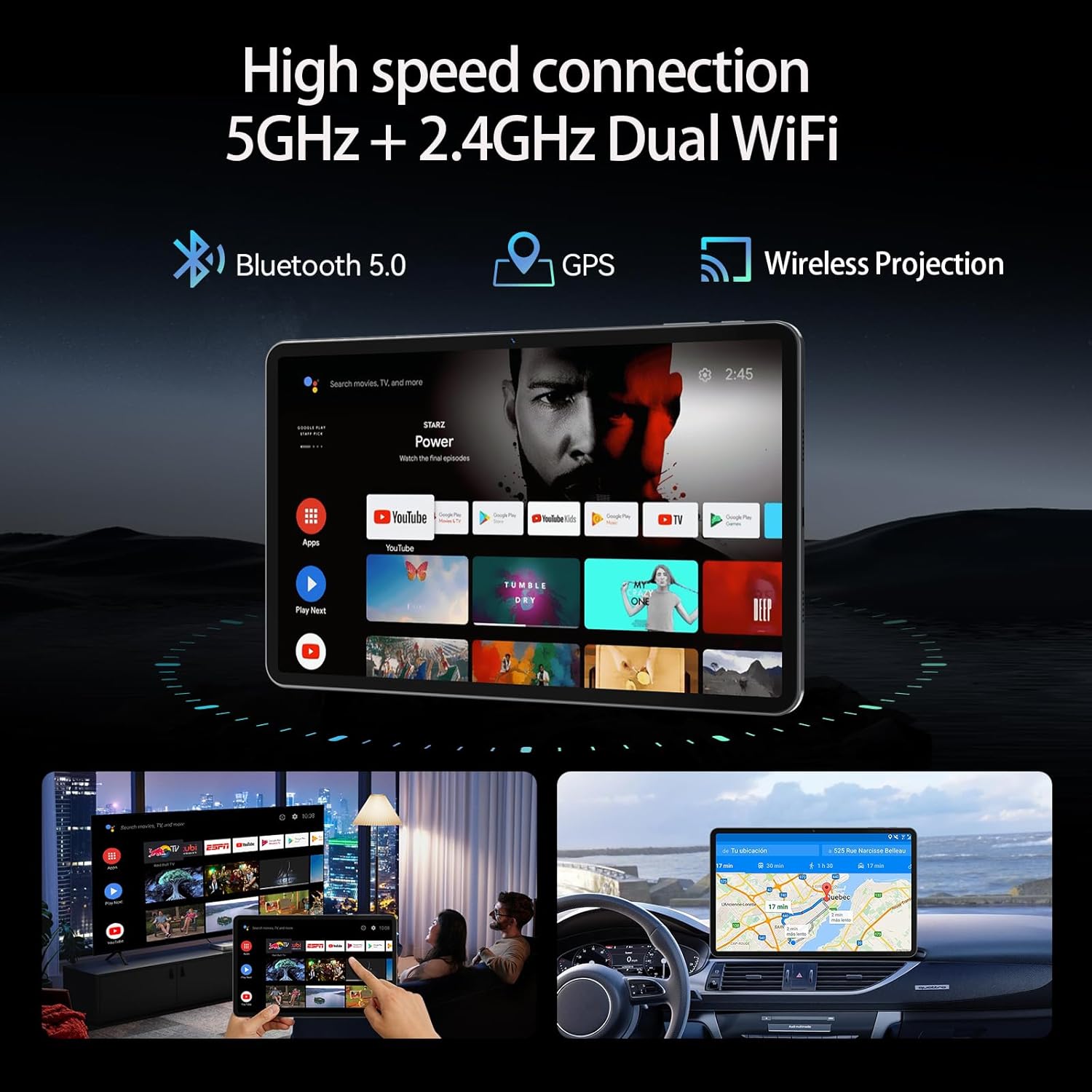 Tablet 5GWiFi Model-Dual-band WiFi and pair with wireless earbuds via Bluetooth 5.0—perfect for Zoom calls or video playback.
