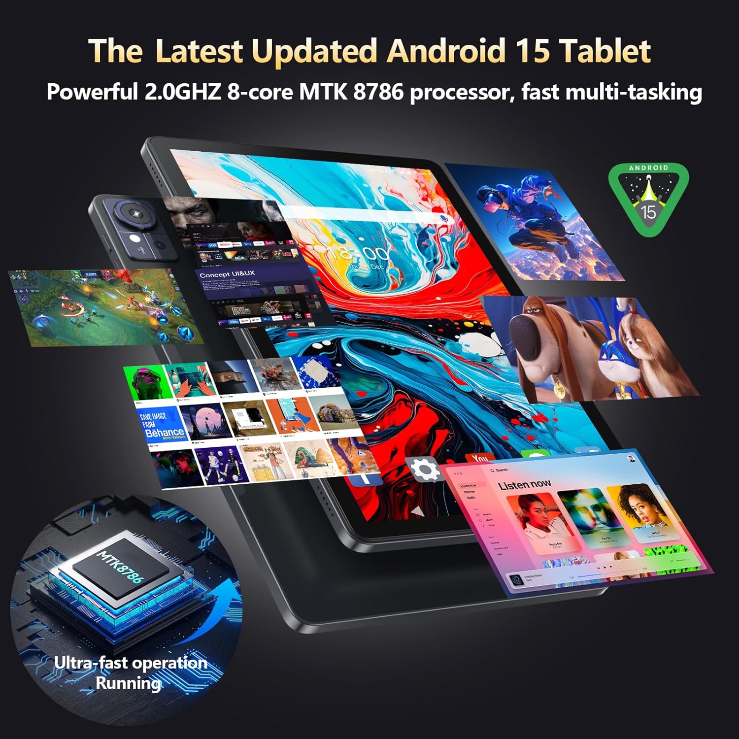 💡【16GB RAM + 128GB ROM + 2TB Expandable + GMS Certified】This Android 15 tablet features 16GB RAM (8GB RAM + 8GB virtual RAM) and 128GB ROM storage.Expandable up to 2TB via micro SD/TF card (not included) for even more storage.Whether switching between apps or handling heavy workloads, this 11 inch tablet keeps things running effortlessly.The large space can easily store all your files, apps, photos, videos, music and other media to meet your daily life and office needs. The D126 Android 15 tablet is GMS certified! You can download your favorite apps such as Netflix, TikTok, Facebook, Twitter, YouTube, etc,making it perfect for everyday use.