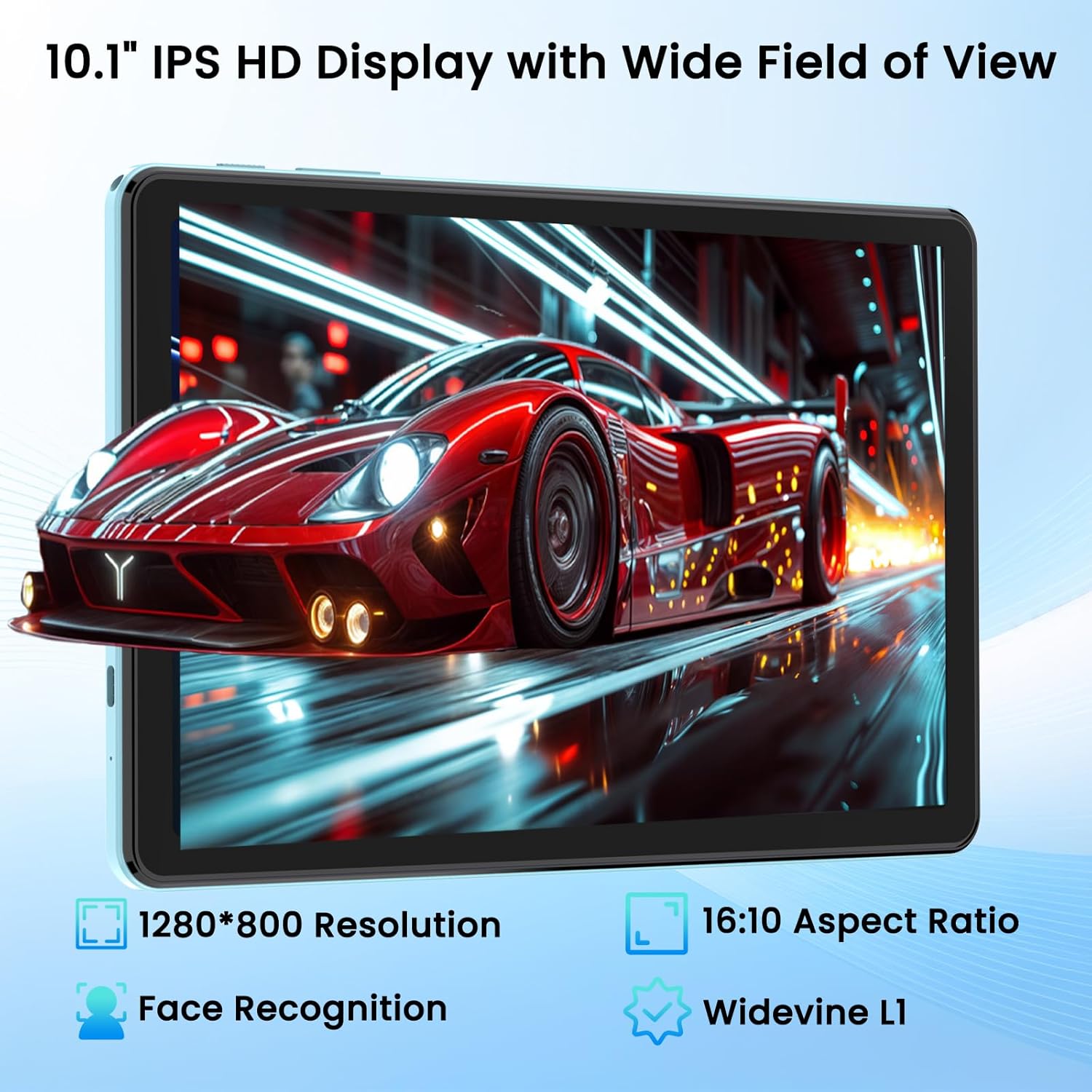 【10.1-inch IPS + Widevine L1 + Eye Comfort Mode】This Android tablet features a 10.1-inch IPS screen (1280×800) with vivid colors and wide viewing angles. Equipped with Widevine L1, it delivers HD content on Netflix/Disney+ with sharp details. The built-in Eye Comfort mode on this tablet adjusts color temperature to reduce blue light, ideal for extended reading or video sessions.