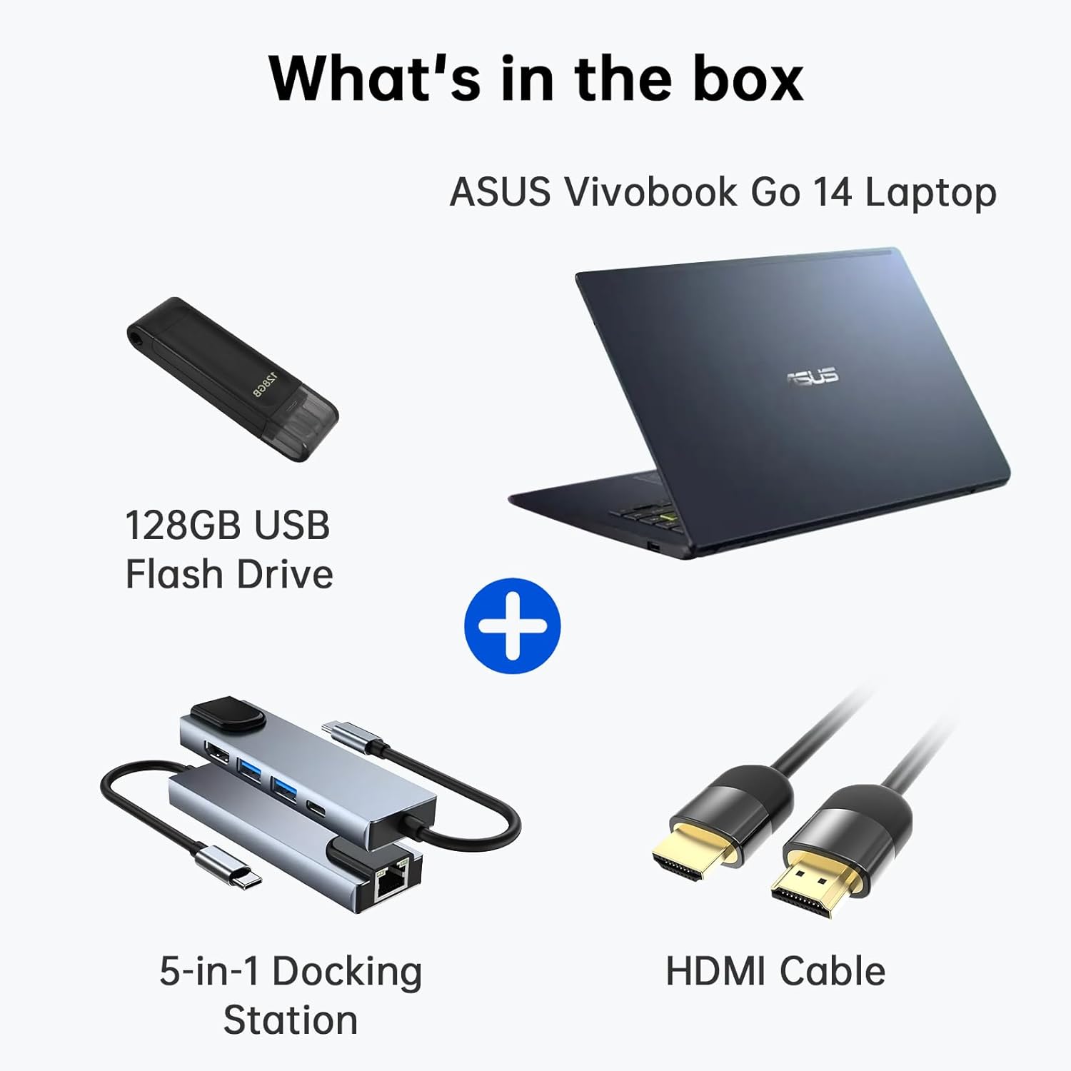 【Expandable Storage with Essential Accessories】 Enjoy 128GB eMMC storage, a 128GB SSD, plus an extra 128GB USB flash drive for quick, portable file access. The included 5-in-1 docking station and HDMI cable provide versatile connectivity for work or entertainment. Everything you need to boost productivity is ready right out of the box.
