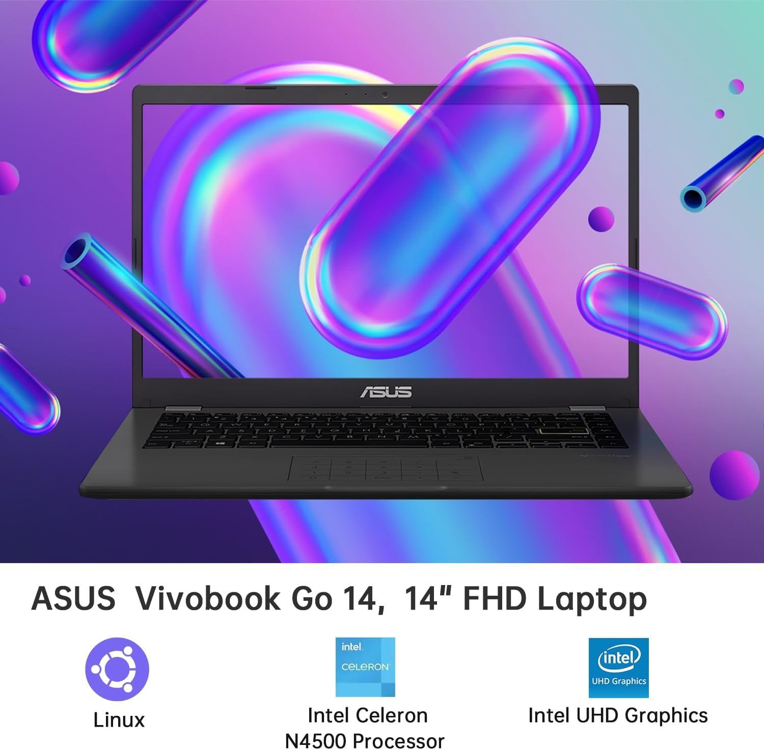 ASUS Vivobook Go 14 Linux Ubuntu Laptop, 14″ FHD Portable Laptop for Students, Intel Celeron N4500, 4GB RAM, 256GB Storage (128GB eMMC+128GB SSD), NumberPad, Webcam, with Accessories, Linux Ubuntu OS