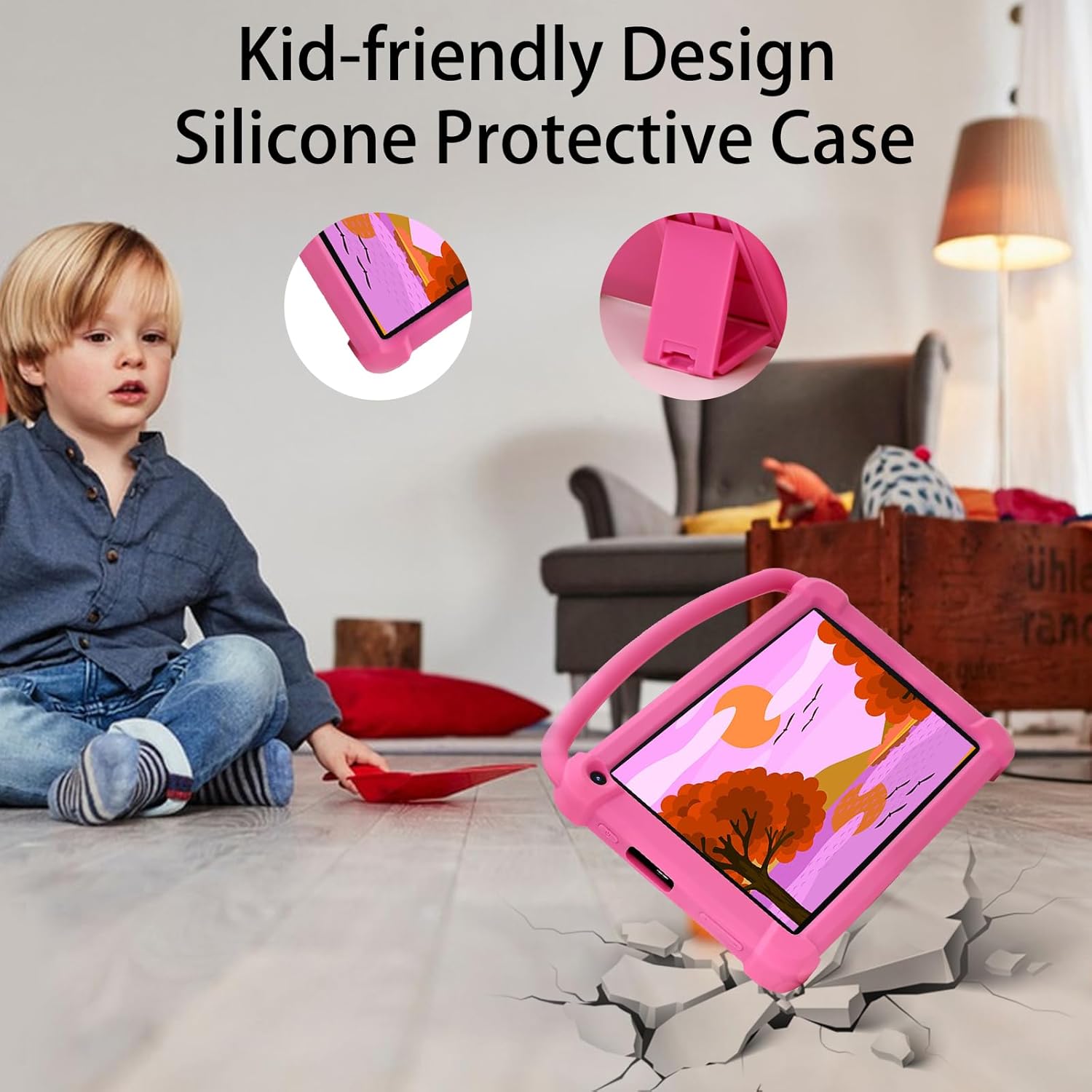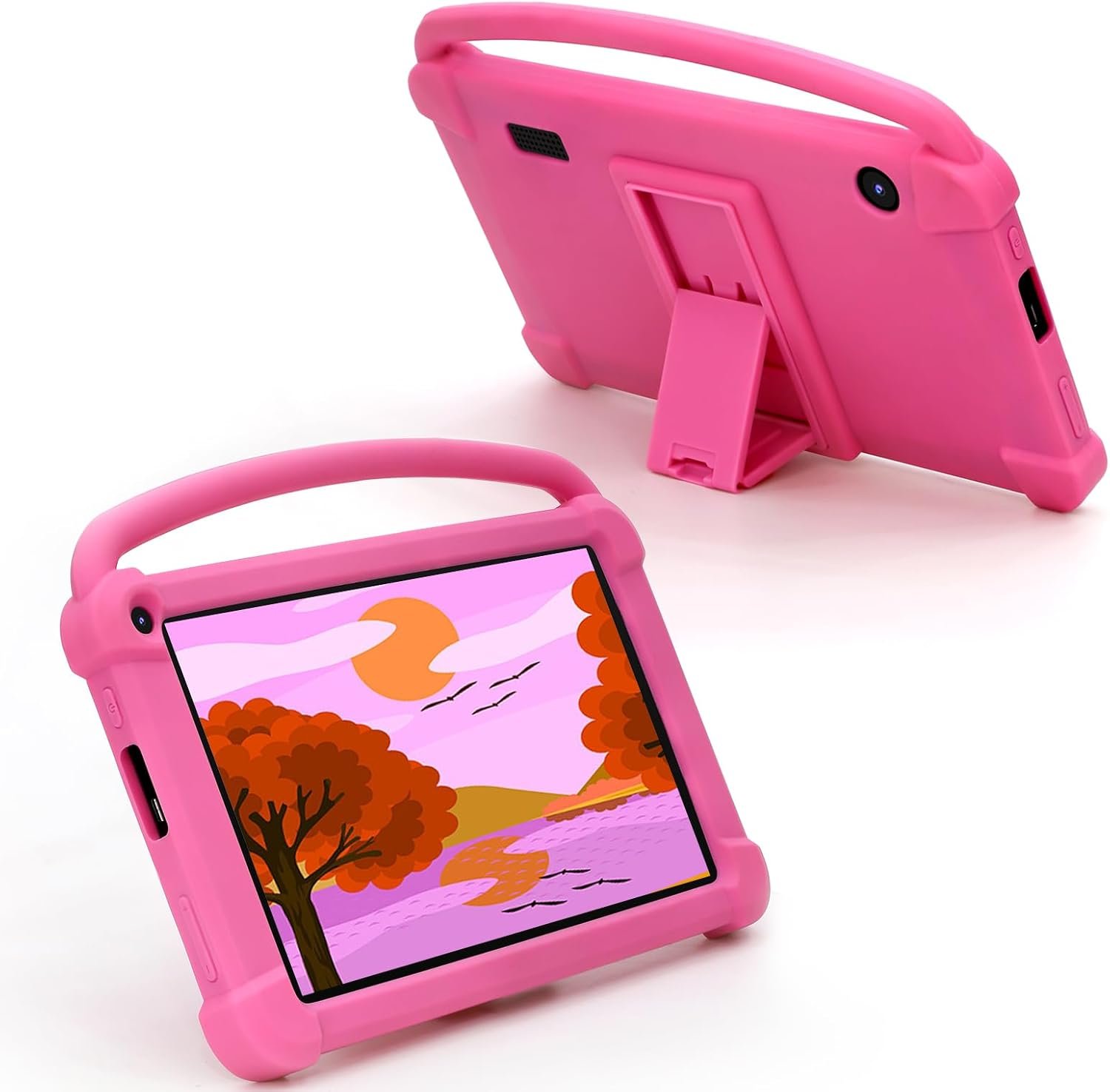 Tablet with soft and lightweight protective case, more durable, it can protect your tablet when drops. Its lightweight and compact size, with the handle, Your kids can brng it easily.
