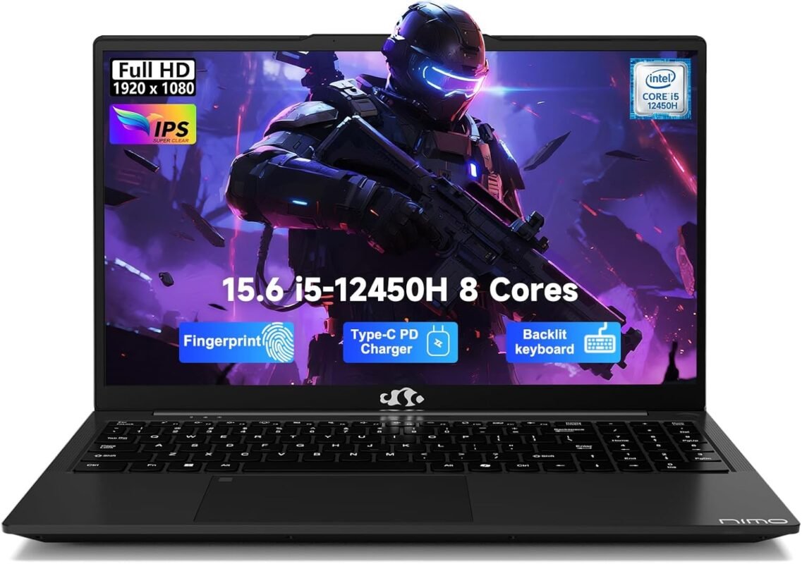 NIMO 15.6″ FHD-IPS-Business-Laptop, 8 Cores Intel i5-12450H 16GB RAM 512GB SSD (Beat i7-11800H, Up to 4.4GHz) Backlit Keyboard Computer, 100W Type C Fingerprint WiFi 6 Numpad Win 11