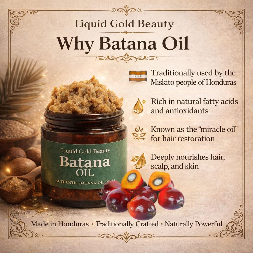 Embrace the power of nature with Liquid Gold Batana Oil — your all-in-one remedy for a healthier, more luminous you.