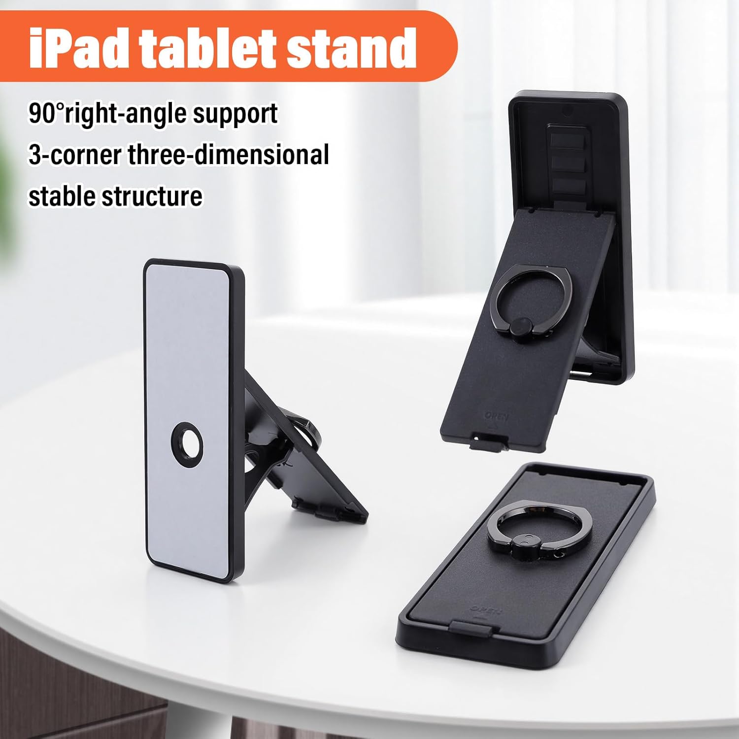 【Multi-Function Stand & Grip】This universal tablet stands combines a secure grip ring with a stable desktop stand. The 360° rotating handle allows comfortable handheld use while the foldable base provides reliable standing support for various viewing angles