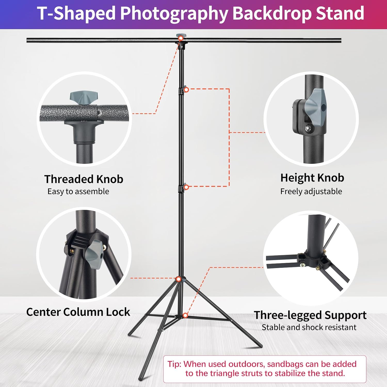T shaped design white screen black backdrop stand is very stable.This is important for streamers, after all, you don’t want your black white screen collapsing at a mere nudge.