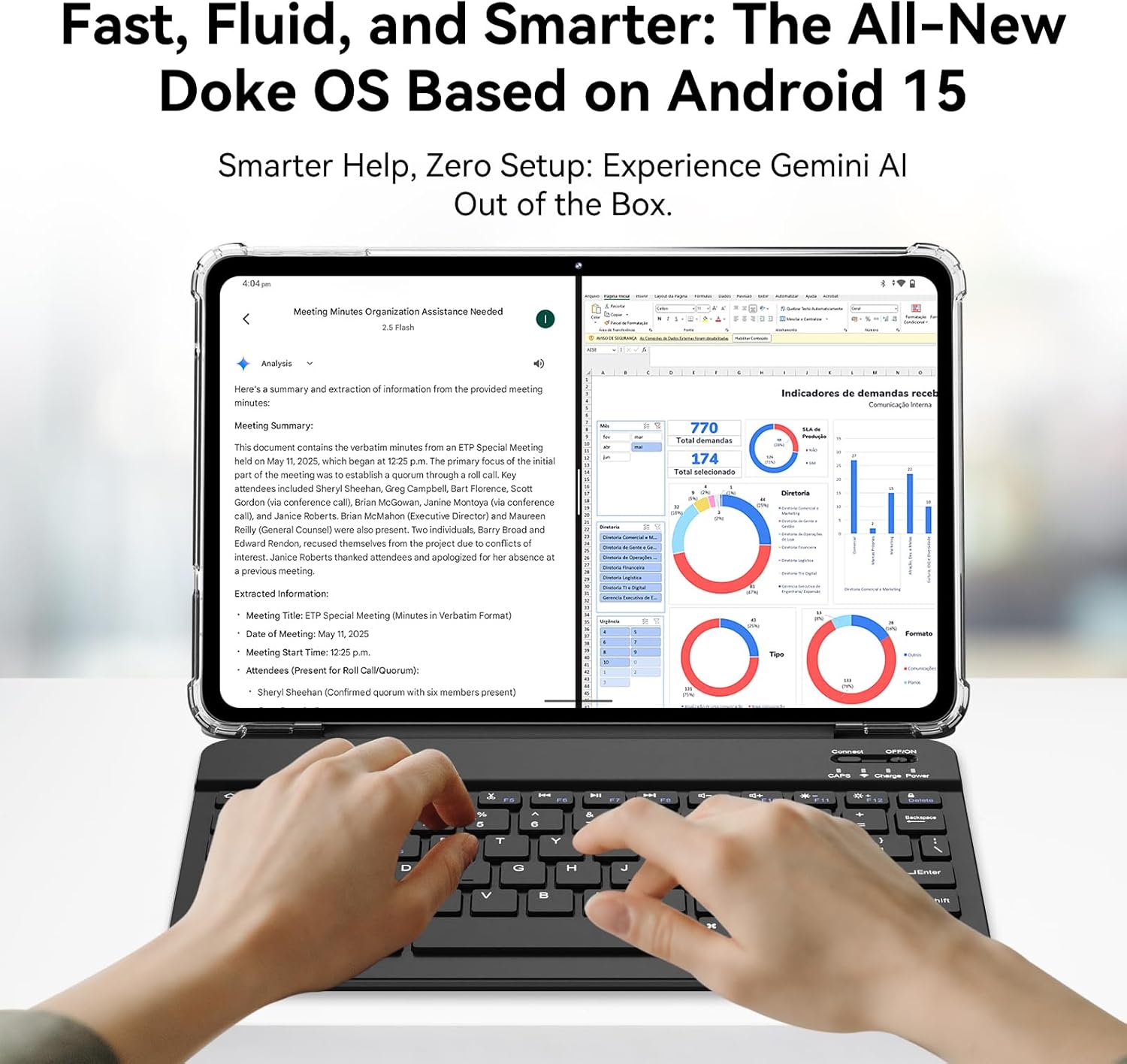 Tablet Android 15 + Gemini AI operating system: Blackview 2025 tablet – your versatile companion for work, gaming, and creative projects. Equipped with the modern Android 15 operating system and Gemini AI, this android tablet with keyboard delivers a smooth, intelligent, and user-friendly experience. As a large tablet, it provides strong performance and an efficient interface for daily productivity. The optimized system ensures this 12 inch tablet responds quickly and handles multitasking with ease.