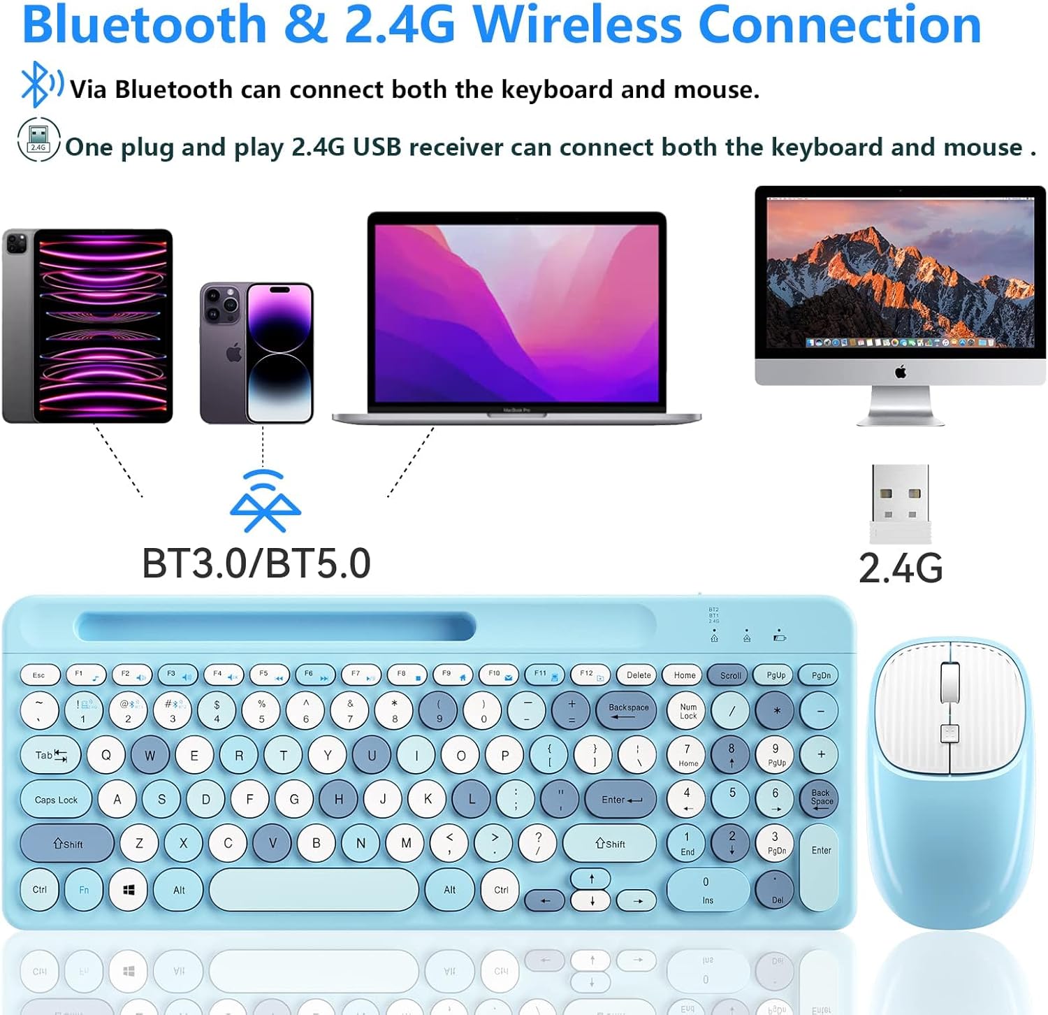 ★Dual Mode with Bluetooth & 2.4G: Wireless keyboard and mouse can easily connect via 2.4G receiver (stored on the bottom of the mouse) or Bluetooth…