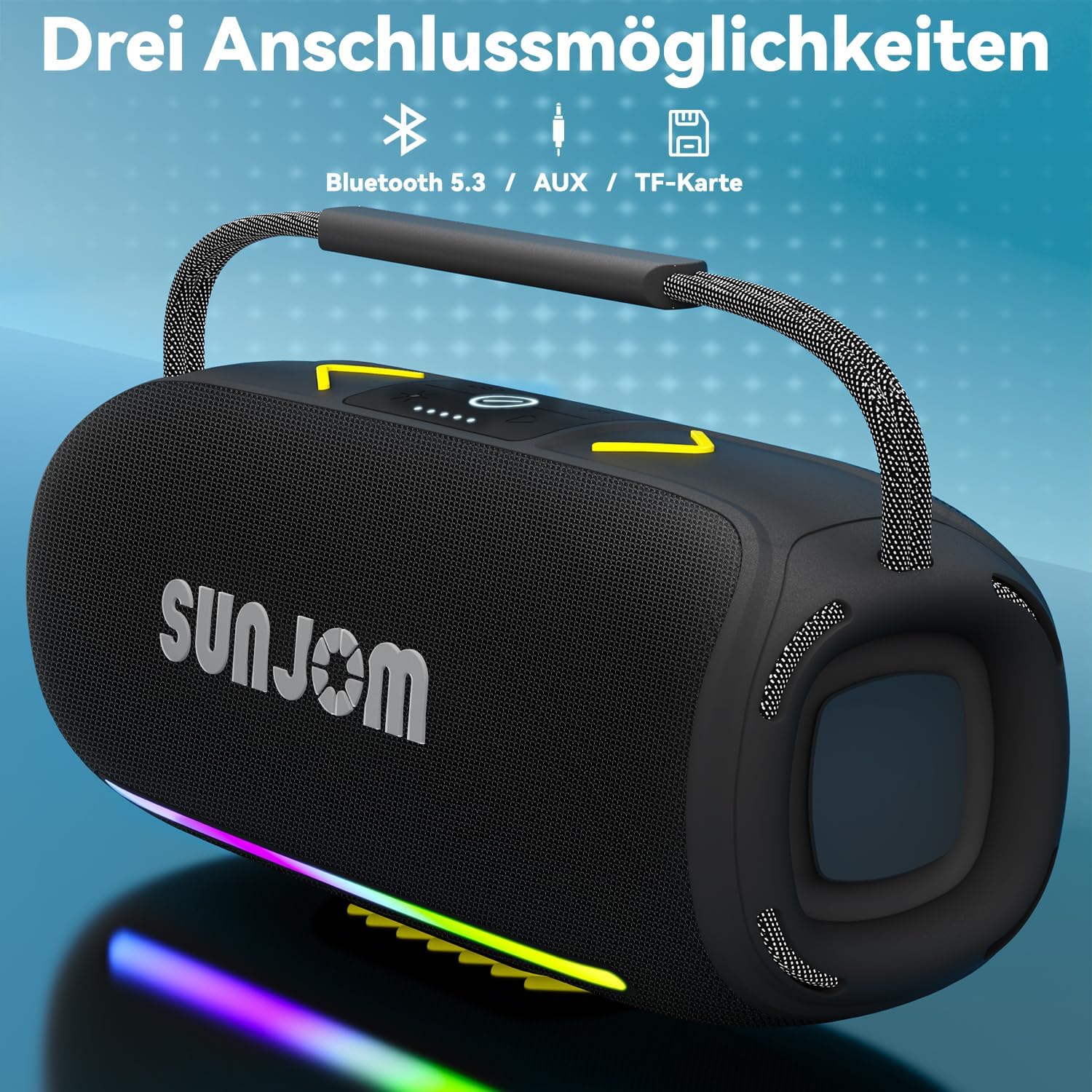 Astonishing Premium Sound: The SUNJOM Torpedo speaker system delivers loud, clear, powerful sound that keeps the beats coming. Its racetrack-shaped woofer delivers exceptional low and mid frequencies, while a separate tweeter produces crisp, clear high frequencies.