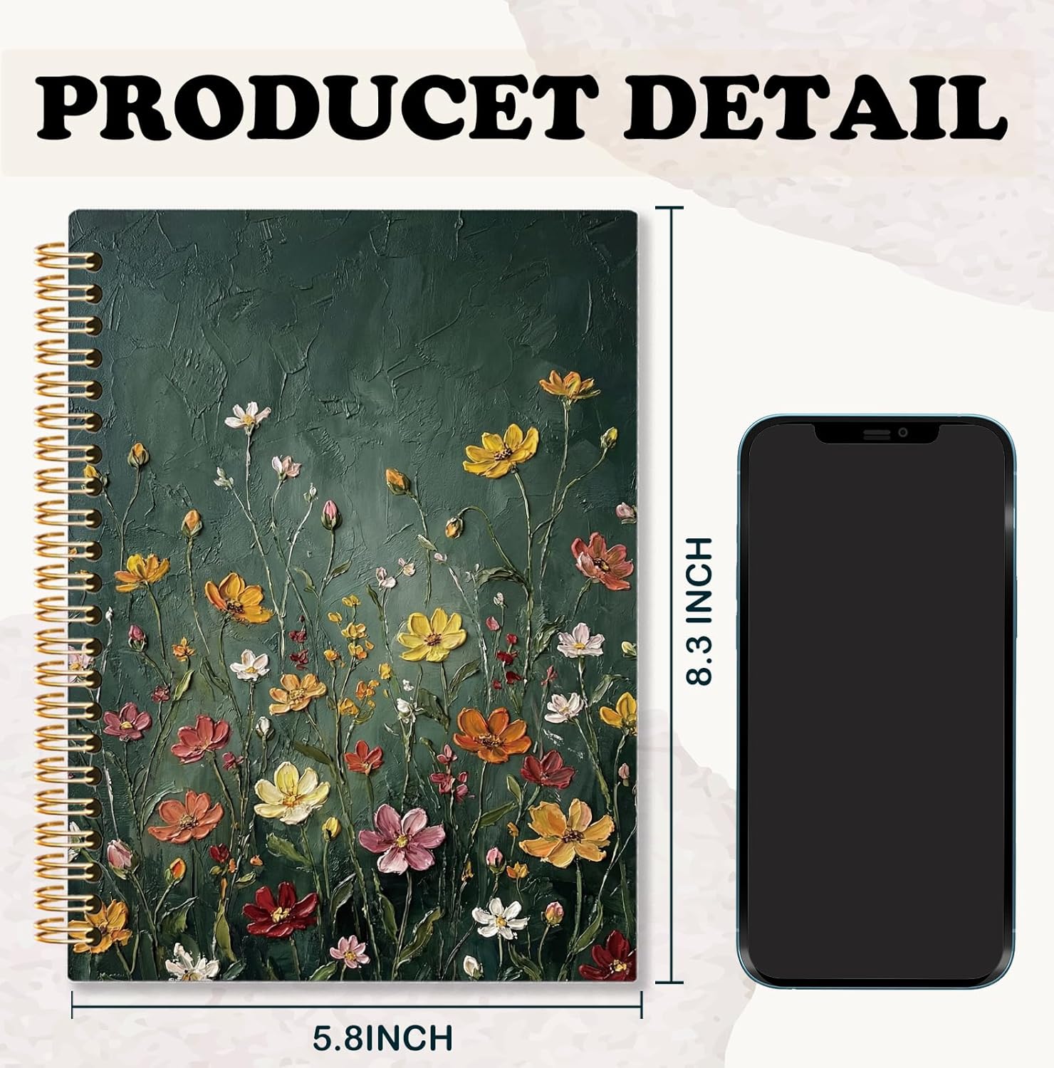 BNHJKFQZ Vintage Floral Spiral Notebook, Wildflower Floral Journal, Rustic Retro Flower Journal…