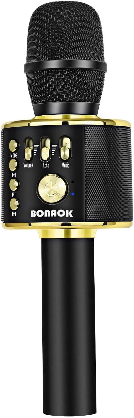 BONAOK Wireless Bluetooth Karaoke Microphone, 3-in-1 Portable Handheld Mic Speaker Machine for All Smartphones, Gifts to Girls Boys Kids Adults All Age Q37(Black Gold)