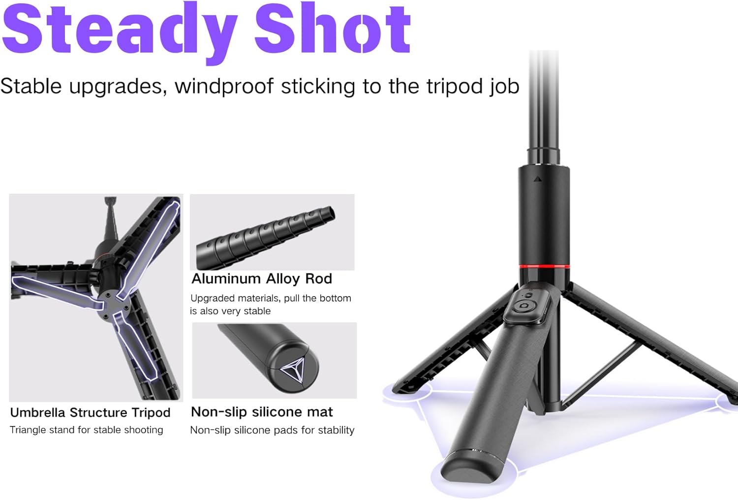 🦶 Anti-Slip Tripod Base for Stable Shooting The triangular anti-slip silicone base stays steady on floors, desks and uneven surfaces to prevent phone slips. This hands-free phone tripod ensures stable shots for vlogs, long-exposure photography, Zoom calls and video recording every time.