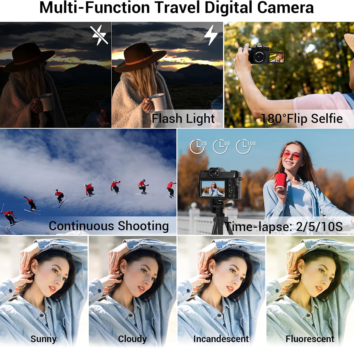 4K Ultra HD & 75MP Cameras for Photography & Video: The digital cameras featuring 4K video and 75MP photo resolution for a smoother shooting experience than a 2.7K camera. This compact camera has a 3″ display with digital image stabilization, ensuring clear images while recording or framing pictures. The 180-degree flip-up screen makes self-blogging easier and is perfect for taking selfies