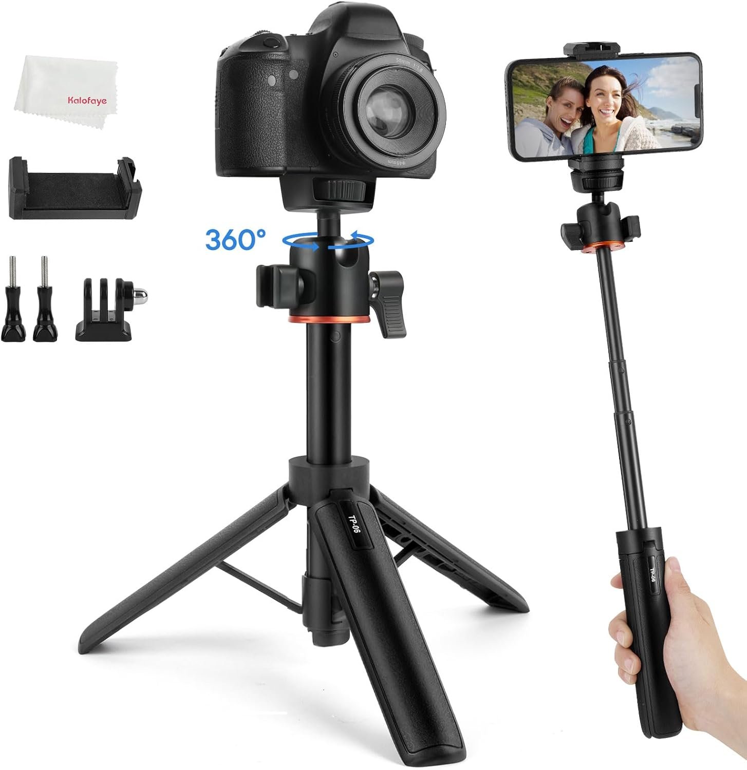 【Multifunctional Tripod】: Can be used as a handheld retractable selfie stick, or as a tripod to be placed stably on the table, if you add a video light on the side, it is perfect for selfies, group photos, vlogs, live videos, etc.